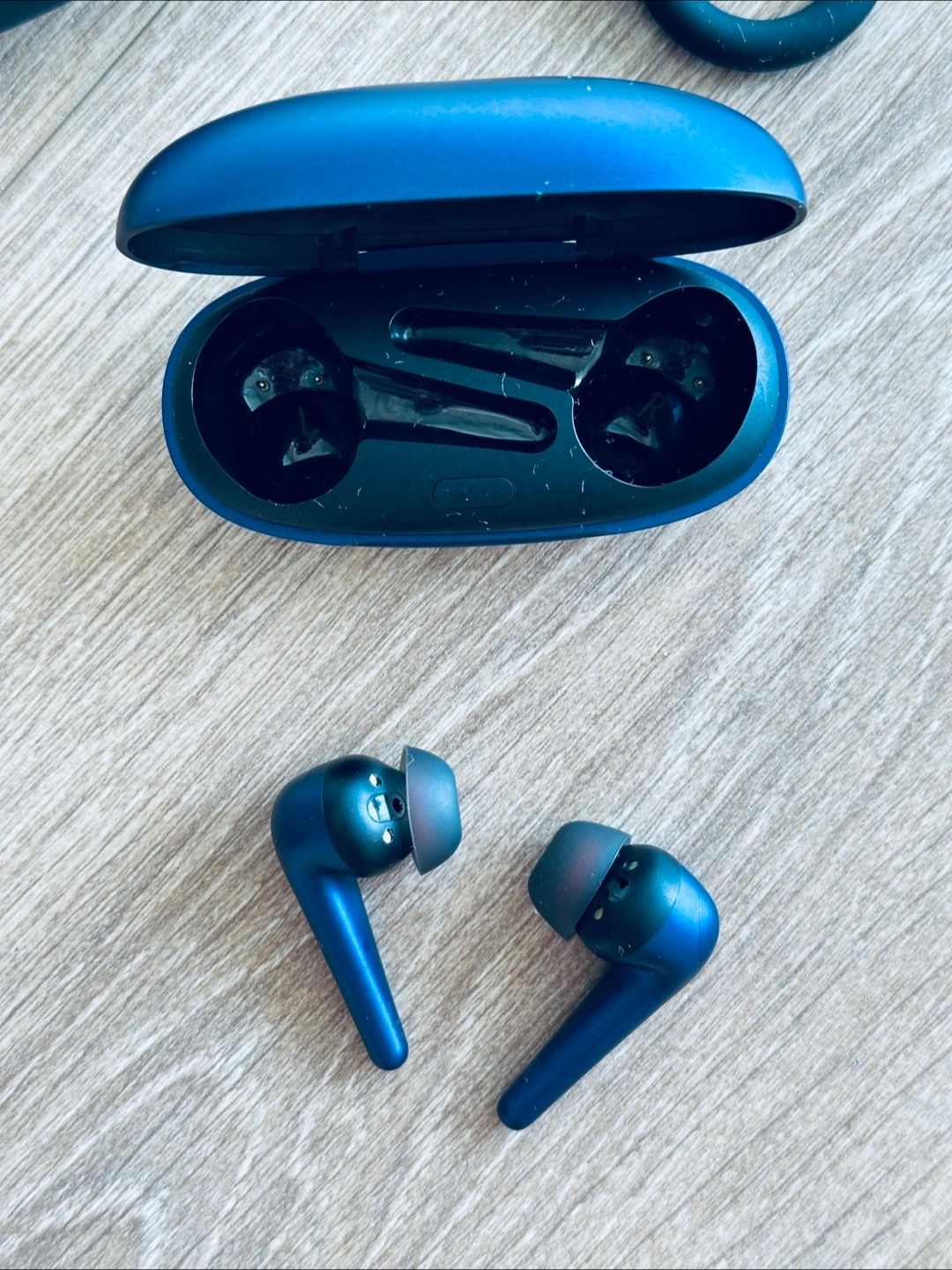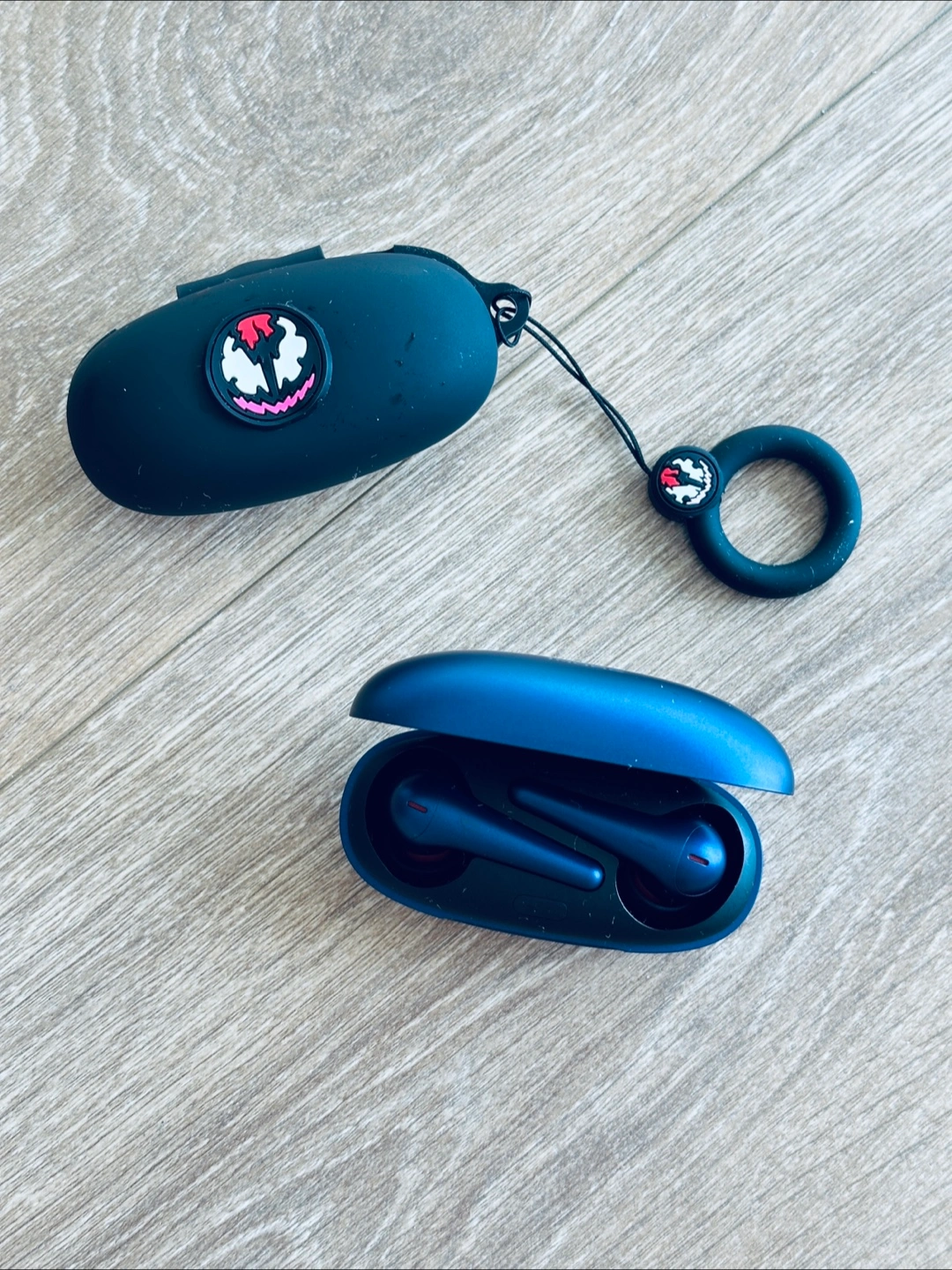 201Earbuds with original charging case. The case features an extra silicone cover. Has active noise cancellation Charges using type c cable. Can provide a spare cable if required. Pick up only