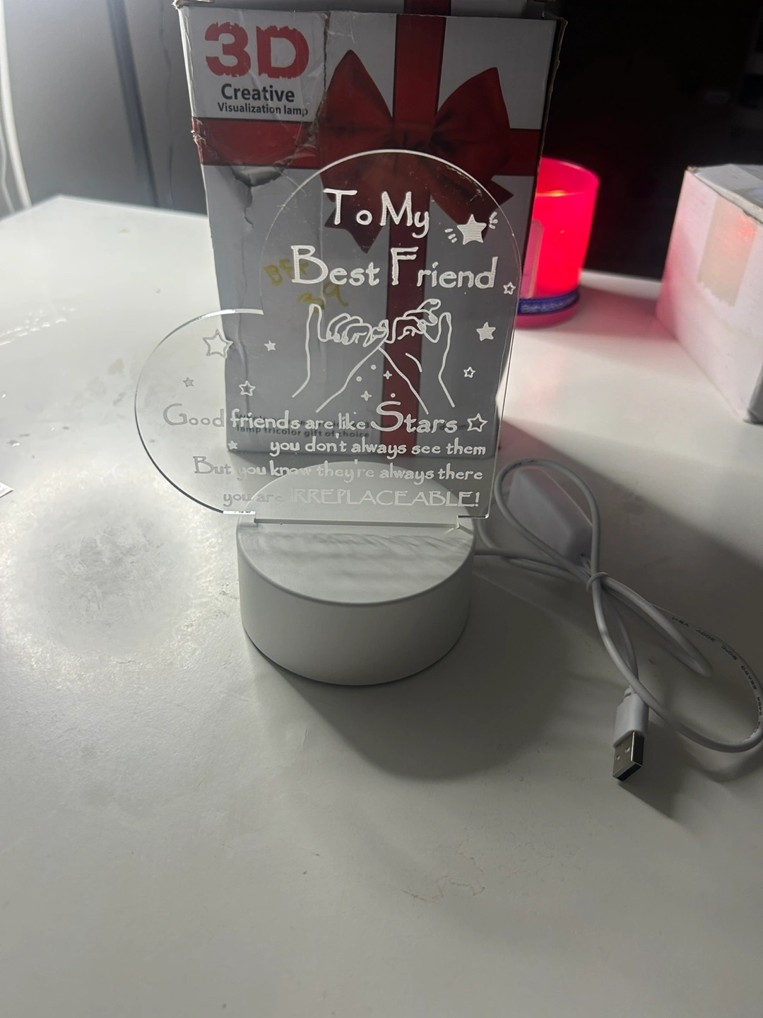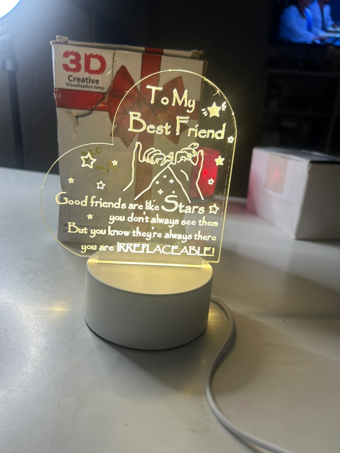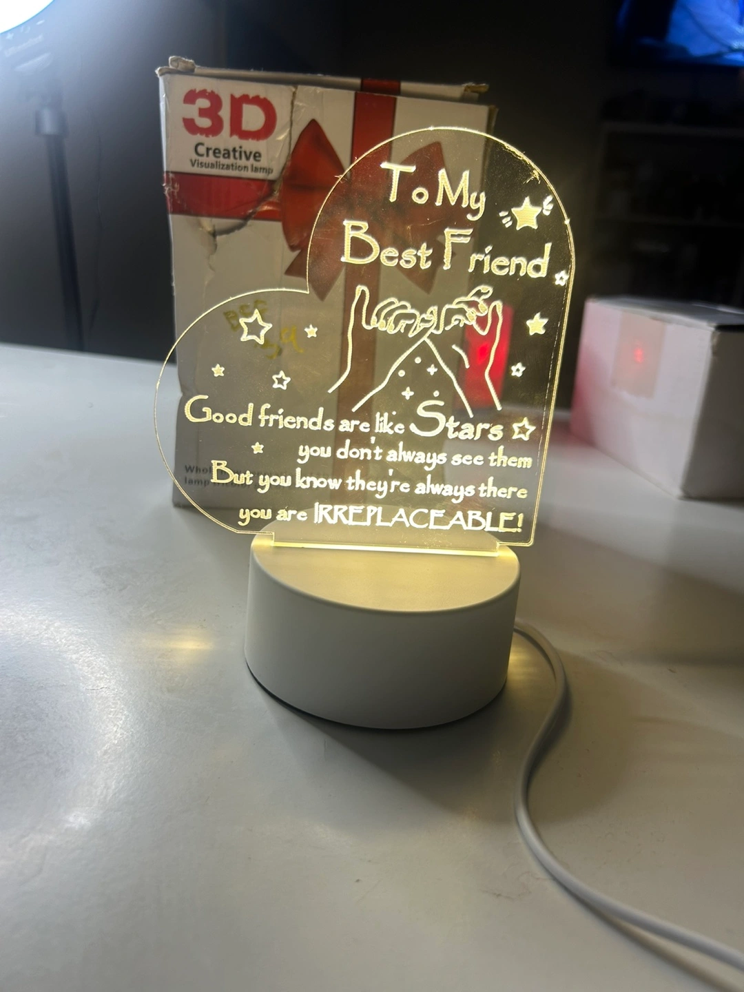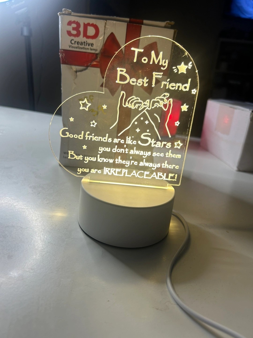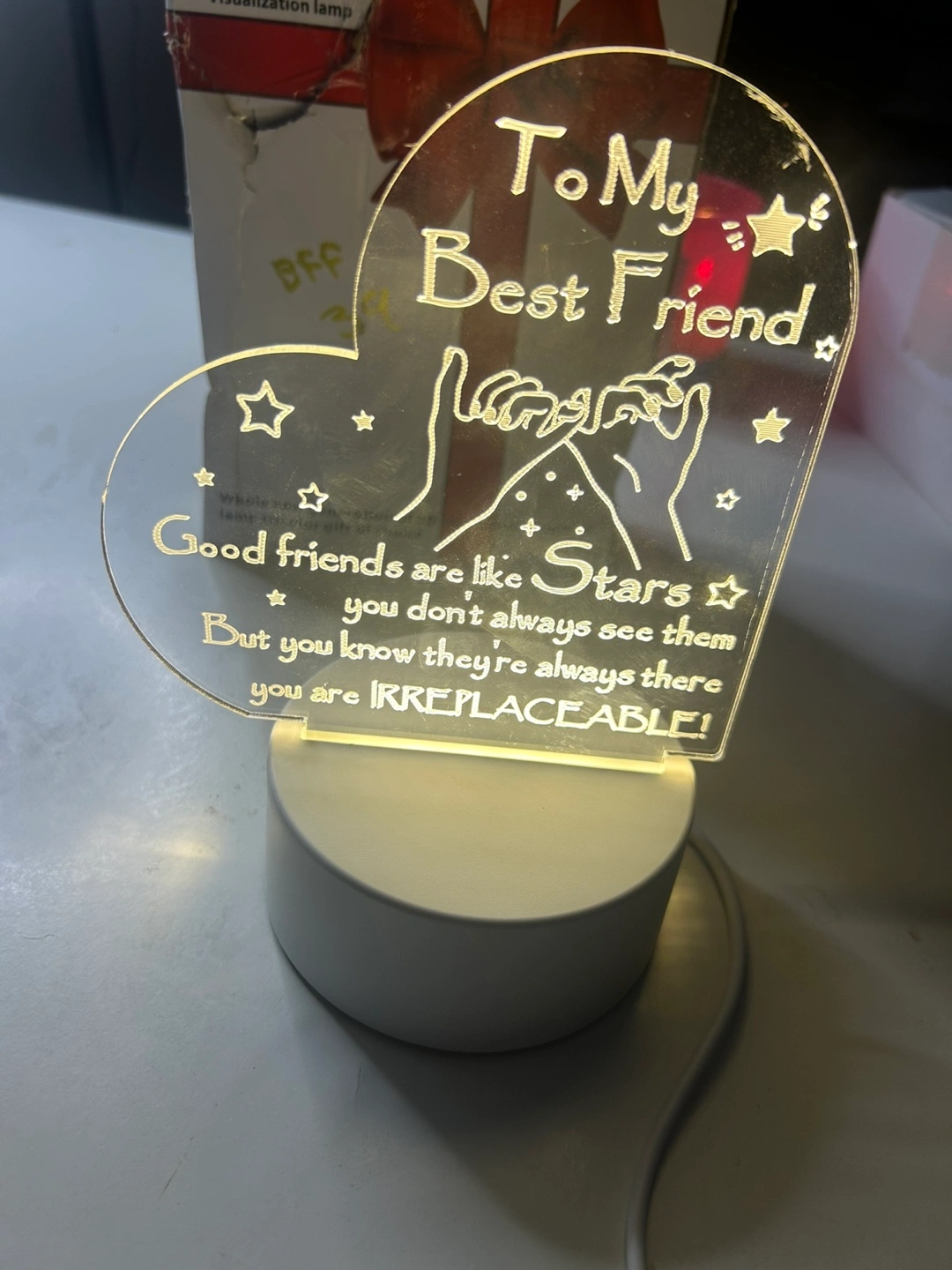 34A heart-shaped light that is perfect to display. Includes a white base. The text reads "To My Best Friend". A relaxing light to help you fall asleep.