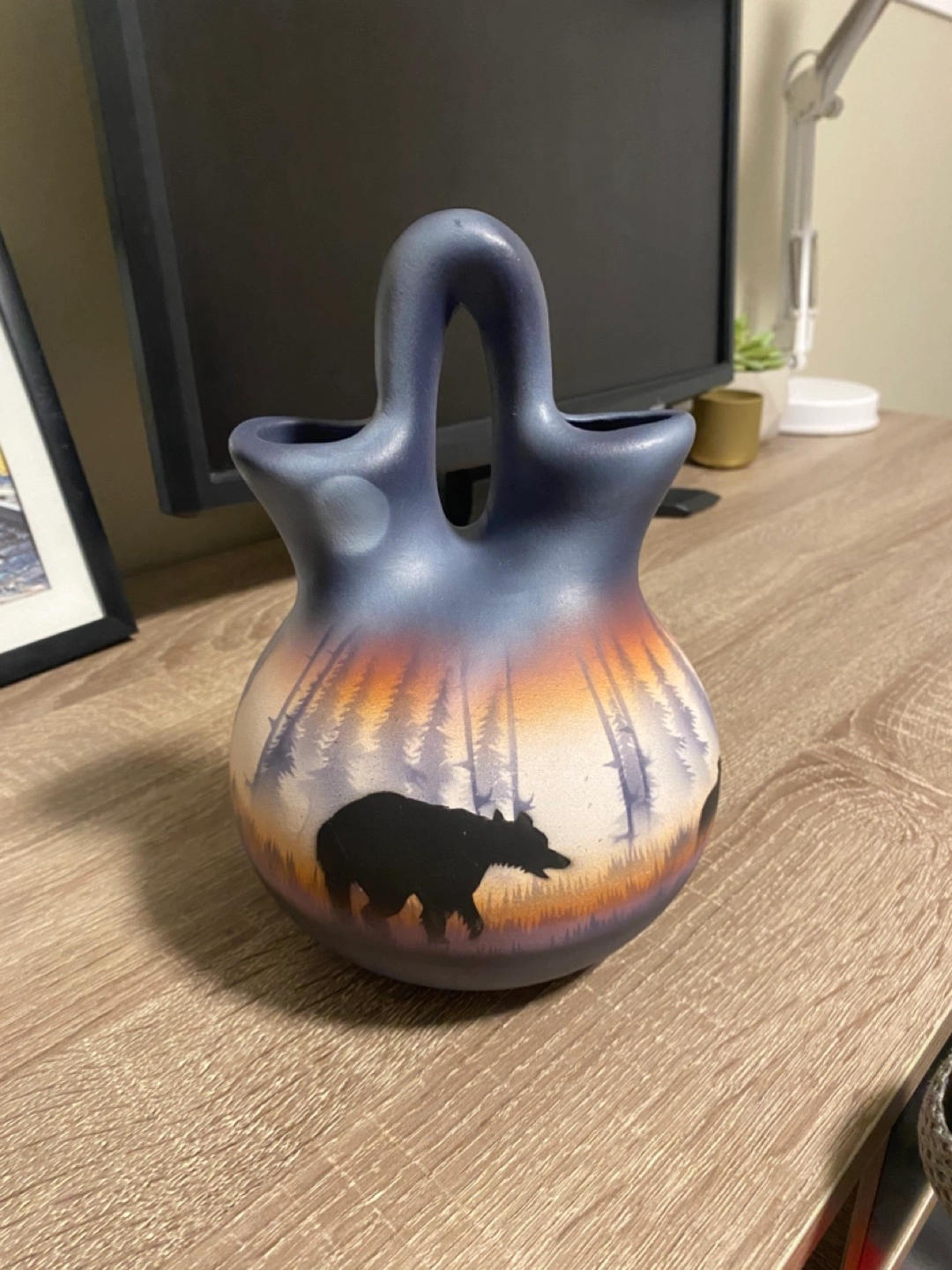 Beautiful hand-painted vase. Features bear & cub silhouettes all around (Karrot won’t let me post the 360° video, DM me if you want to see the other sides, but it’s all very similar in design).