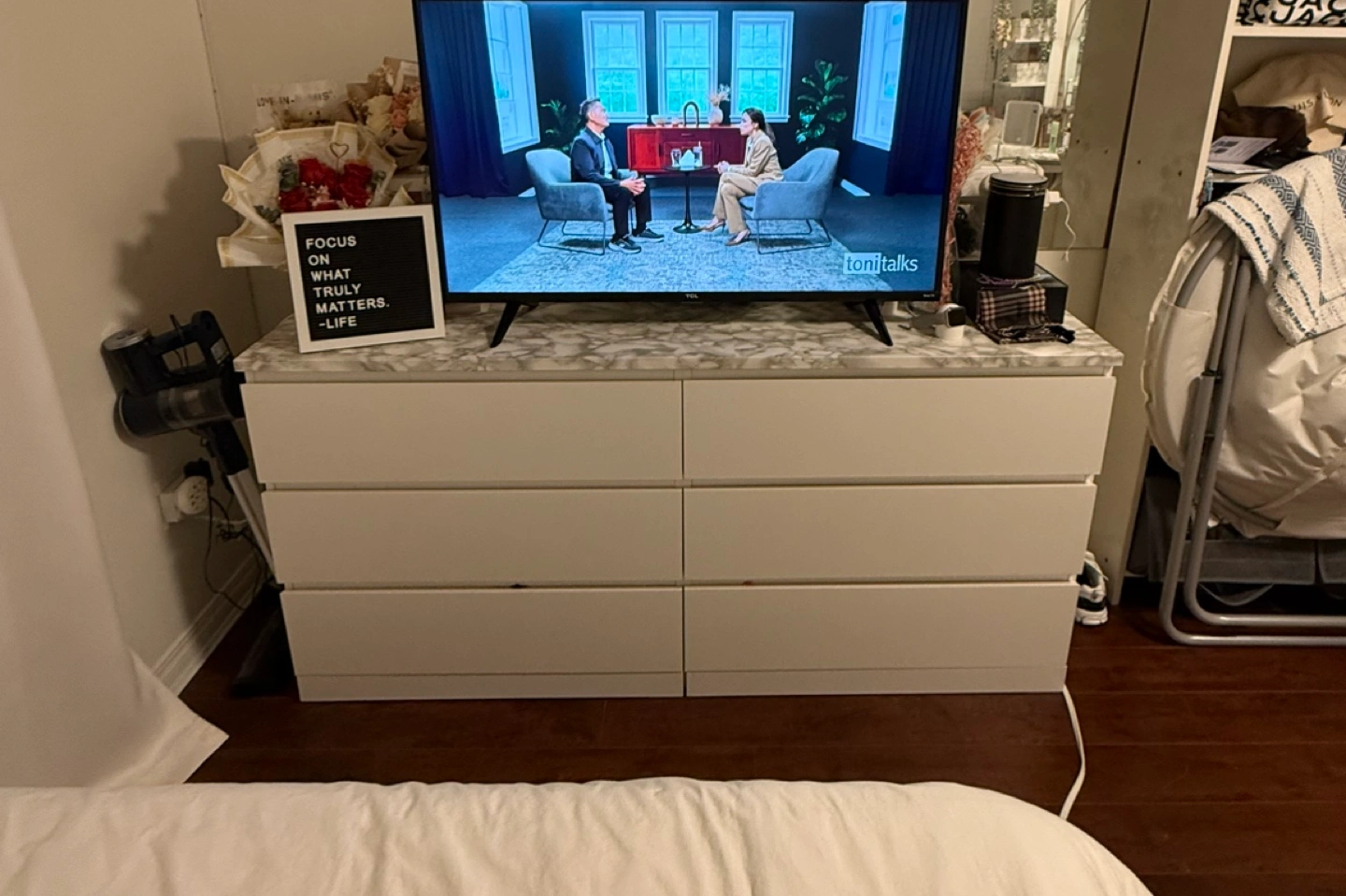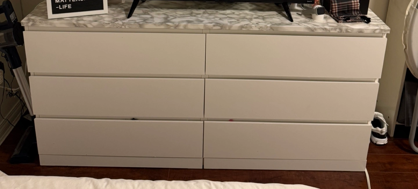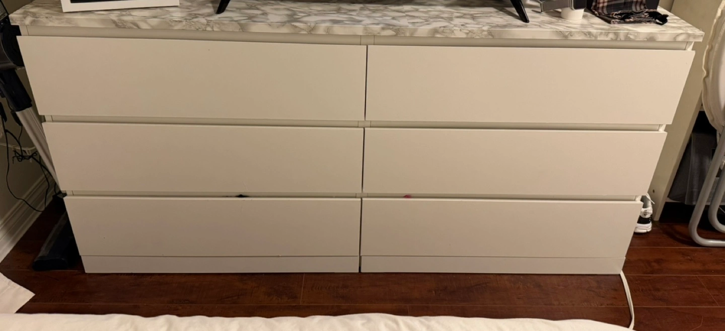 A spacious six-drawer dresser. With smooth drawers that provide ample storage space. You will find this dresser great for storing clothes.