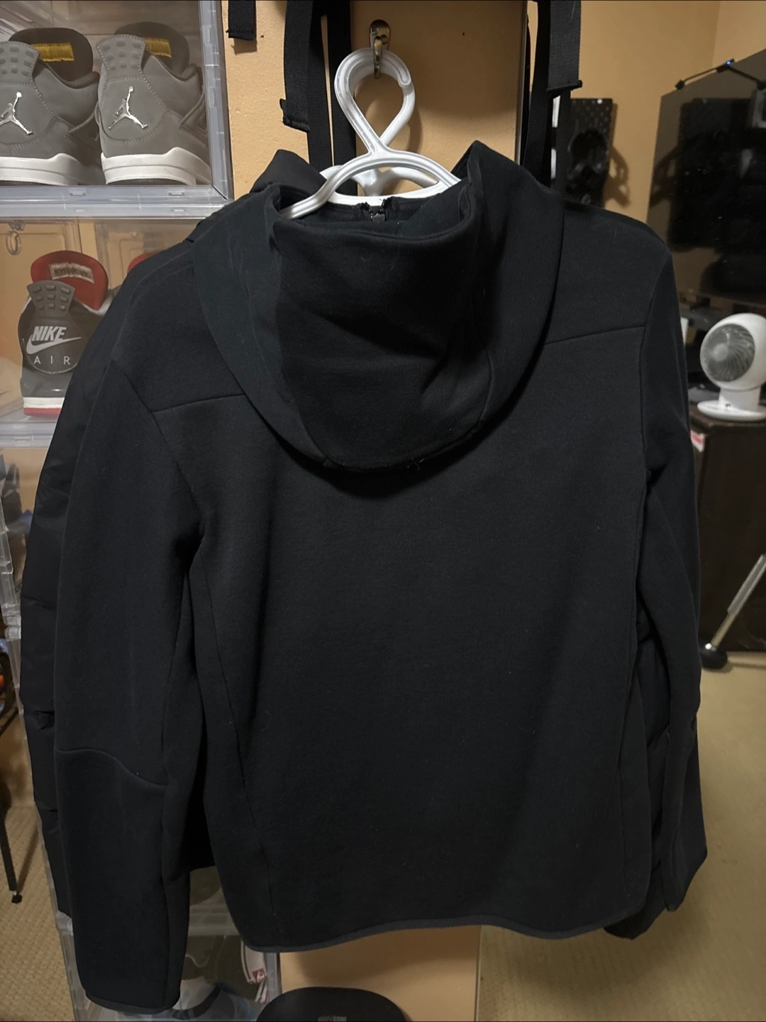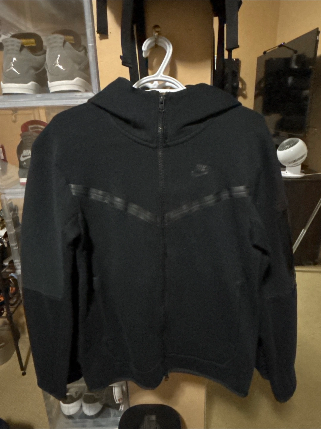 82Black hoodie with a full zipper and a hood. Features a Nike logo on the chest. Can be worn comfortably during your daily walks.