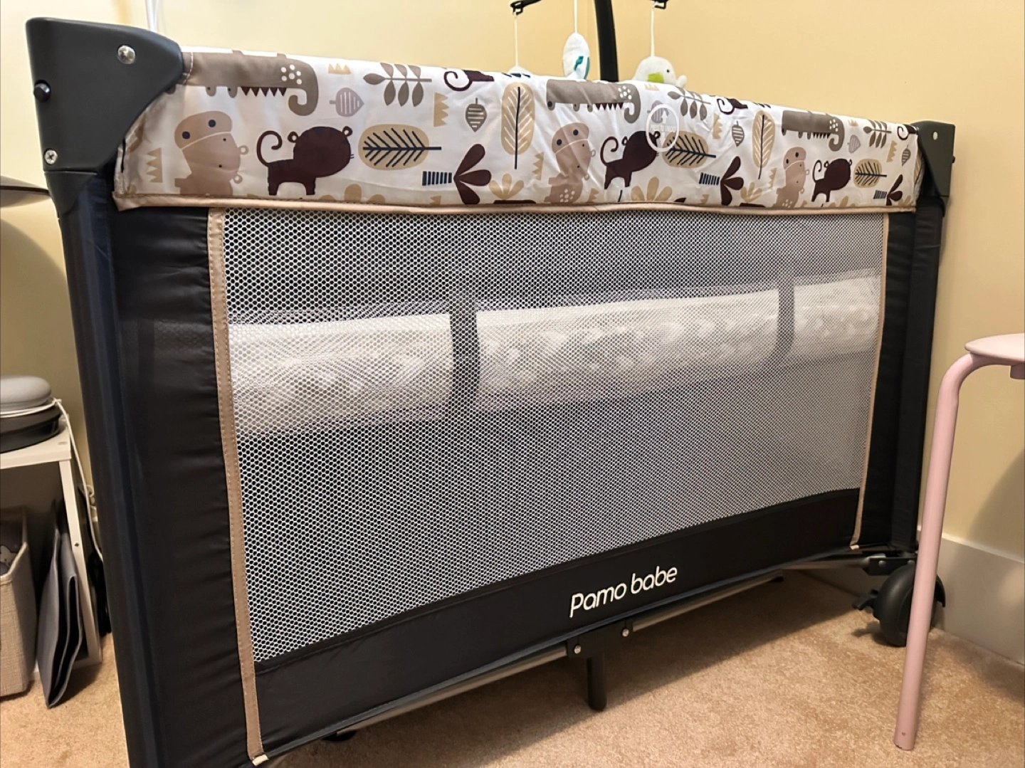 Pamo Babe bassinet nursery center play yard crib with changing table, khaki colour