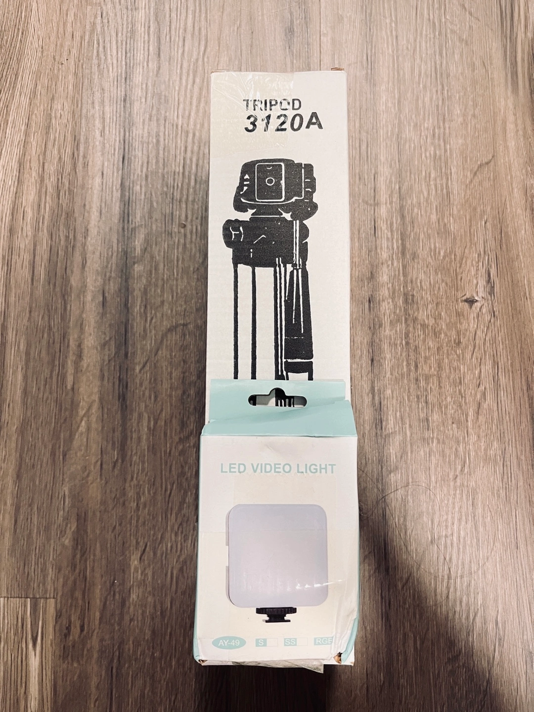 I am selling a tripod and LED video light kit. Features include a 3-way panhead, 4-section leg, and quick lever lock.