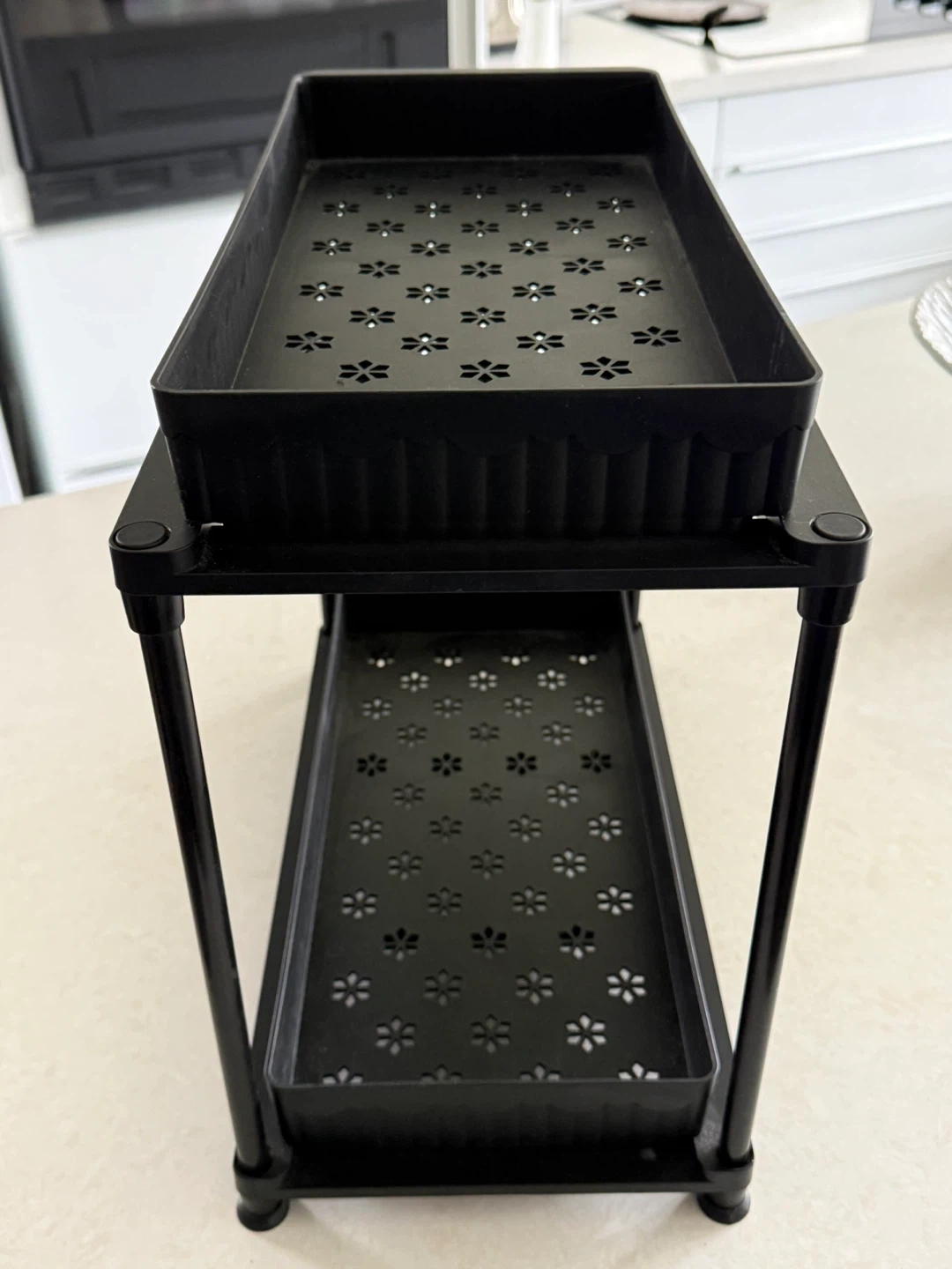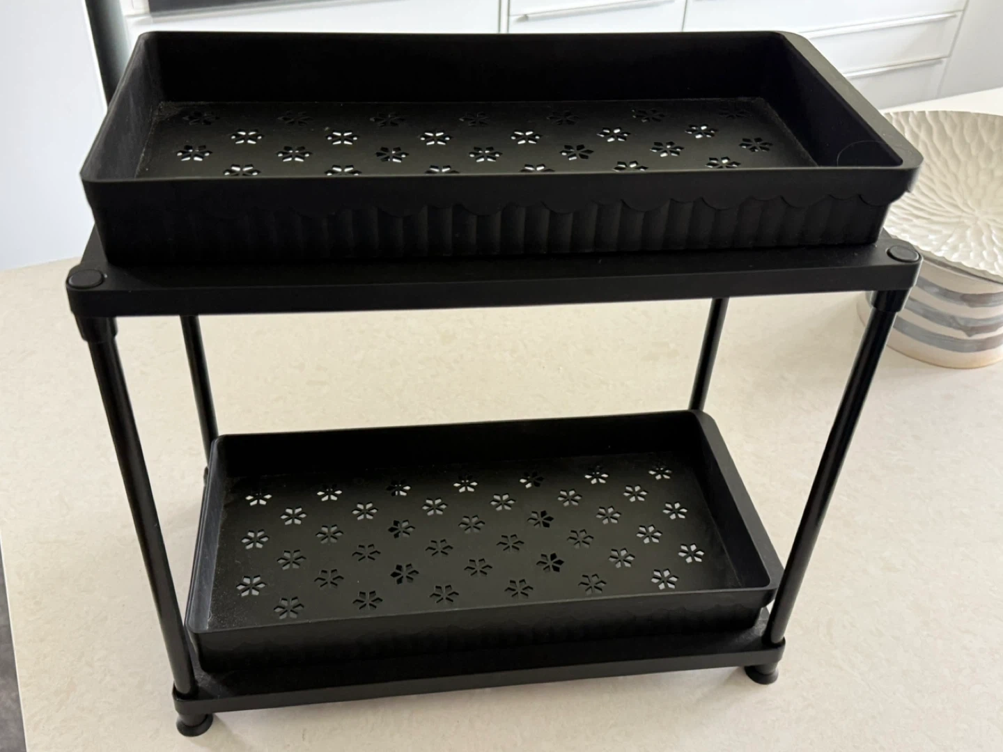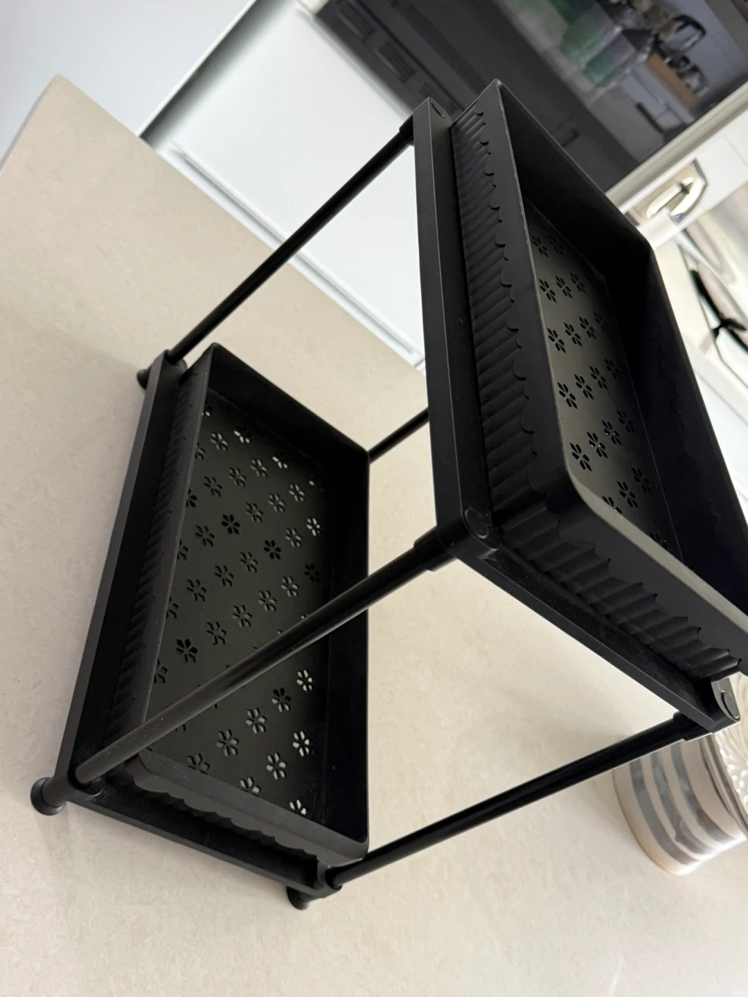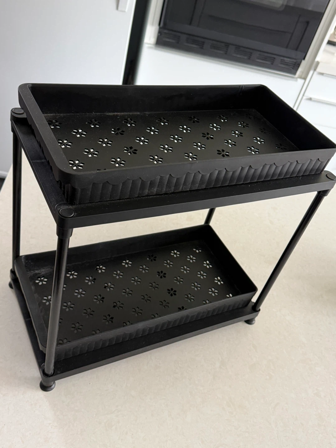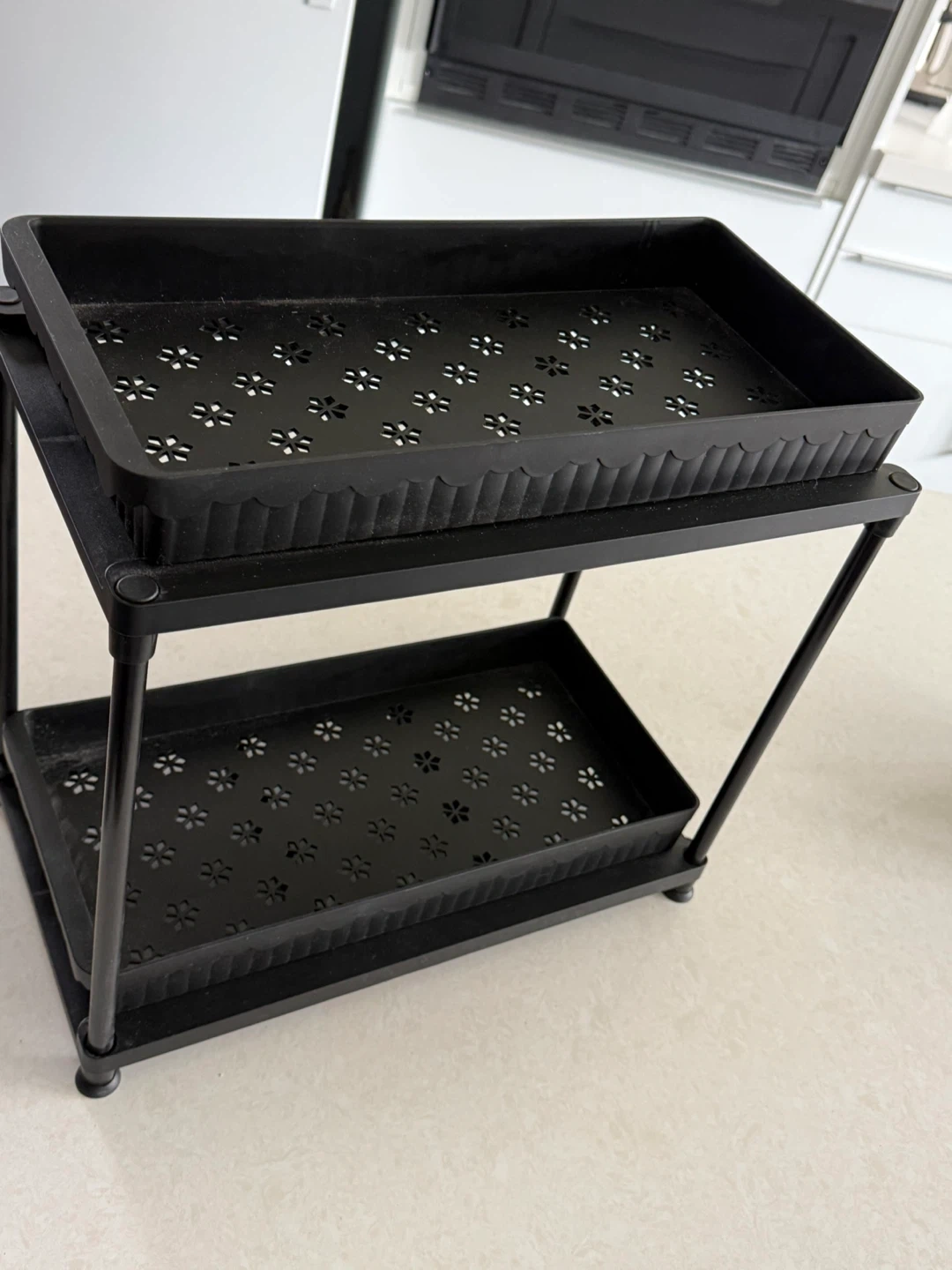 Buy & SellBlack 2-Tiered Storage ShelfBlack 2-Tiered Storage Shelf$10This is a handy black 2-tiered storage shelf. Perfect for organizing small items on countertops or in cabinets!ConditionLike newWHERE TO MEETGrantham AveView MapSELLERShumailaGrantham829 reviews0 chats·1 favorites·11 viewsSEND CHAT TO SELLERHi Shumaila! I’m interested in your listing.Hi Shumaila! I’m interested in your listing.Get the Karrot app to chatSign In to chat