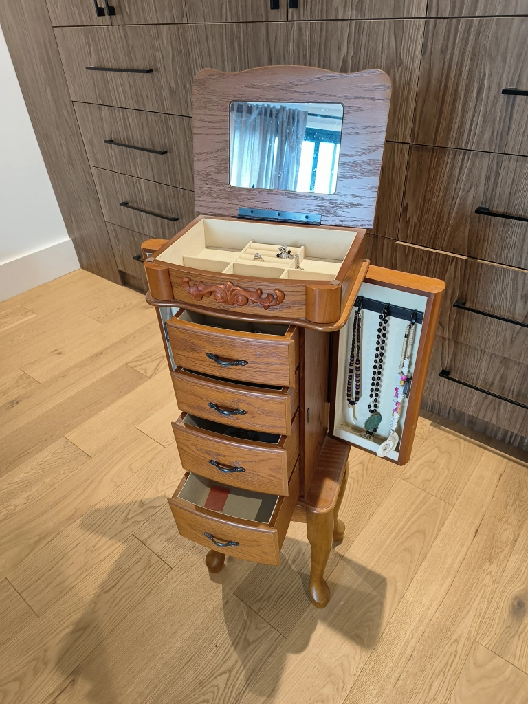 Wooden Jewelry Armoire with Mirror