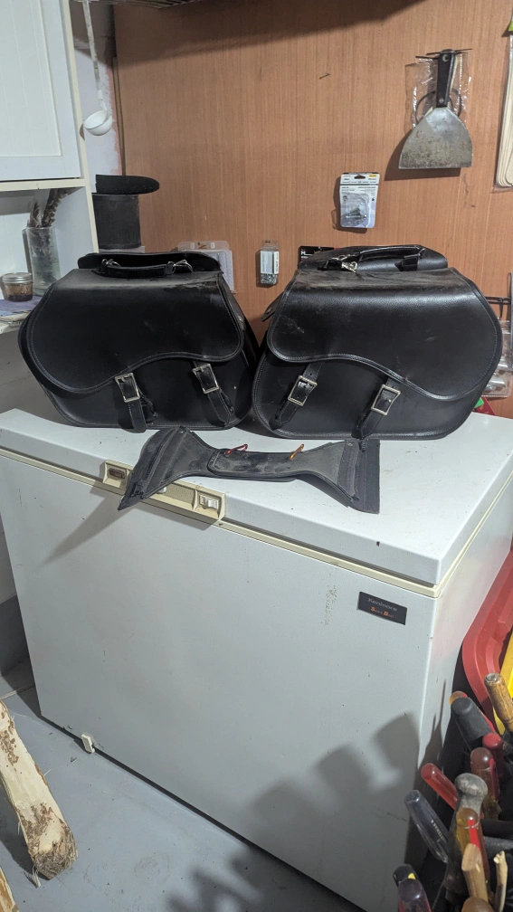 Selling a pair of black saddlebags. With multiple straps and buckles. Also, a connector to attach the bags to the motorcycle. Taking a ride on a motorcycle can bring you a great sense of peace.