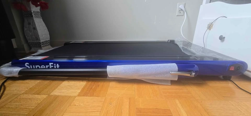Foldable brand new treadmill with Bluetooth. The treadmill's surface belt requires proper tightening.