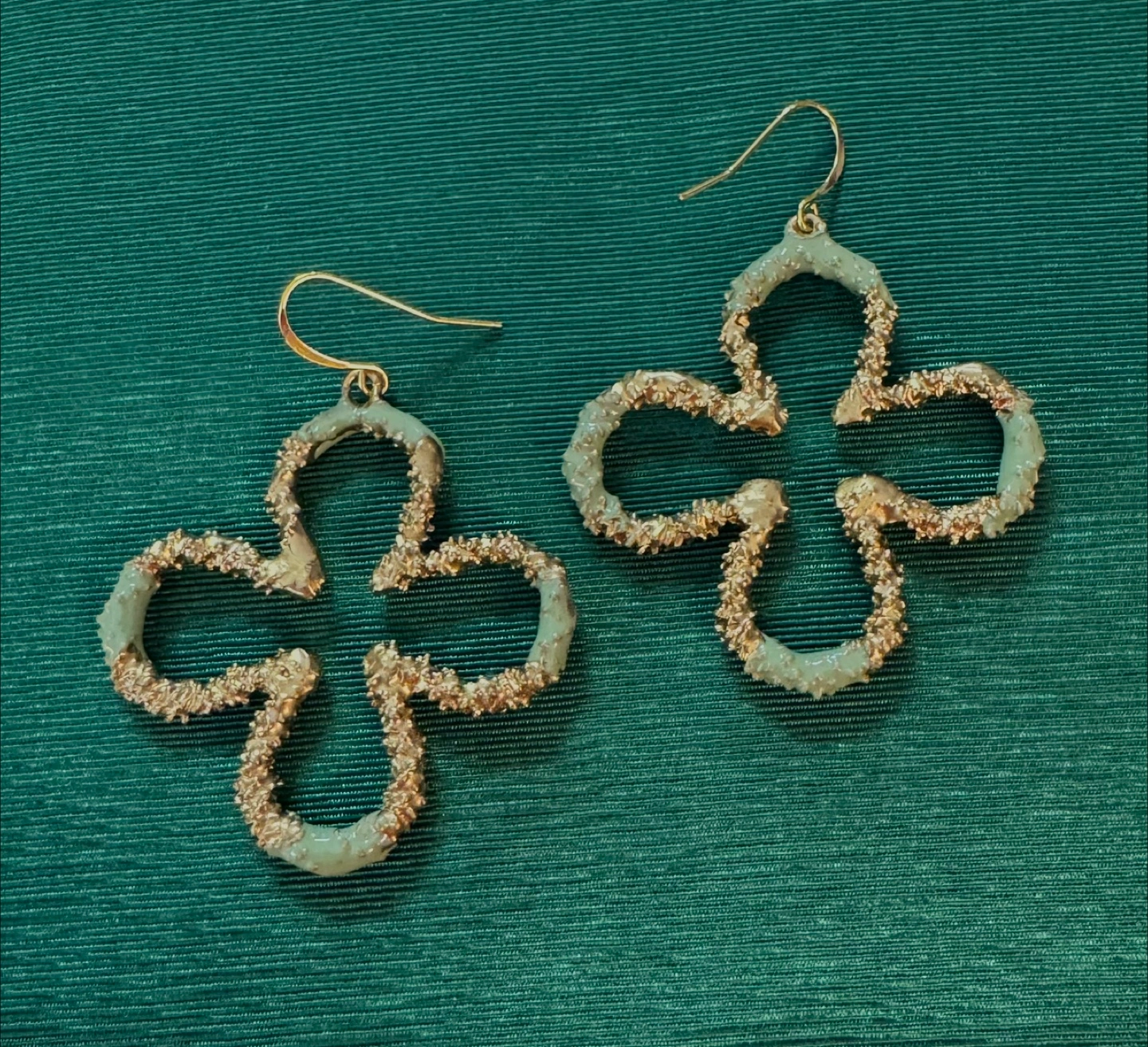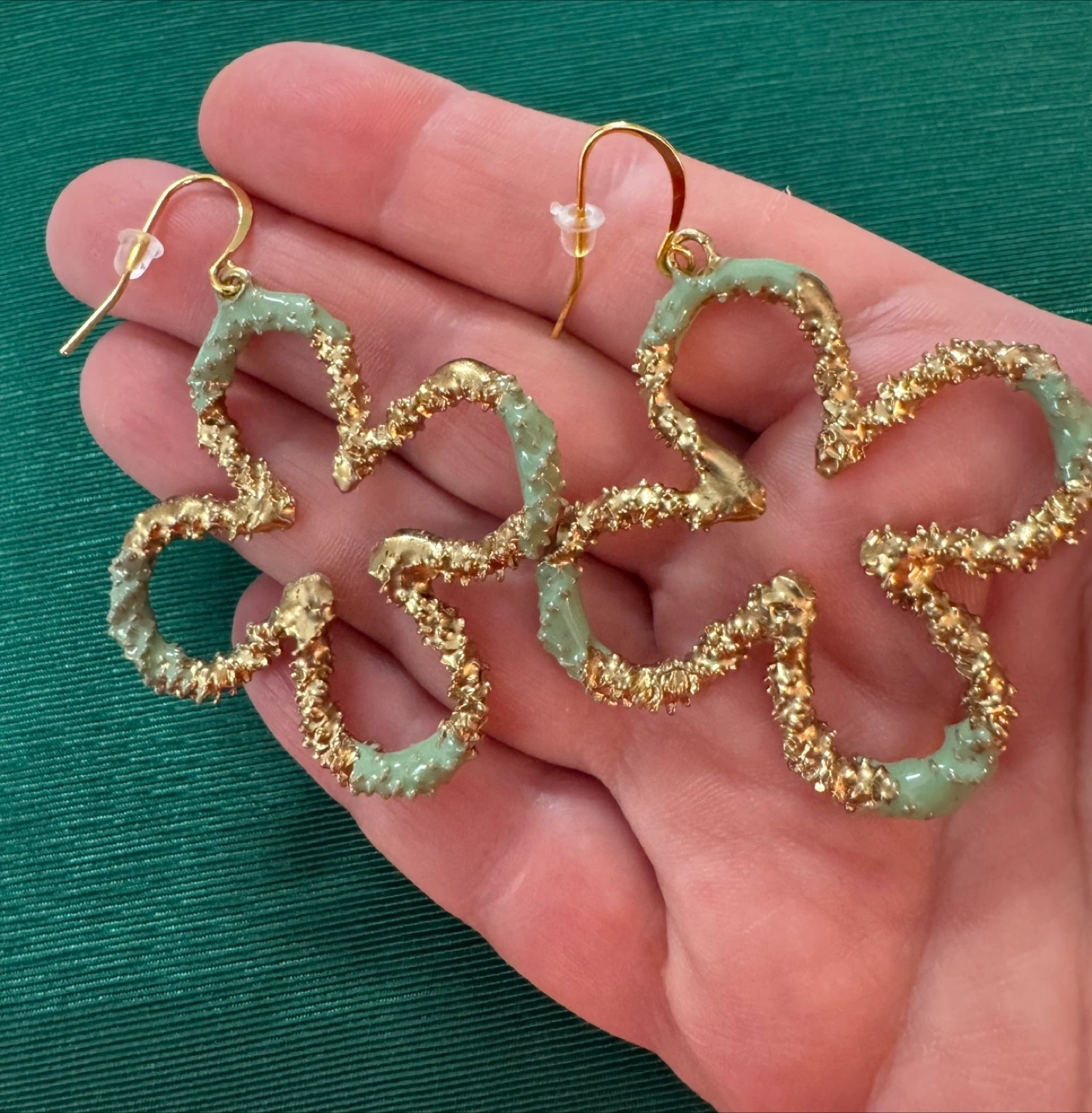 14k Gold Plated Clover Drop Earrings w Jade Enameling