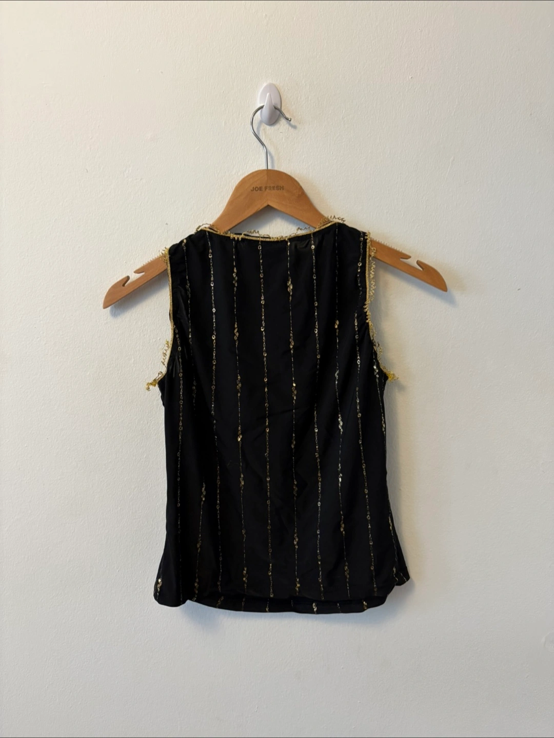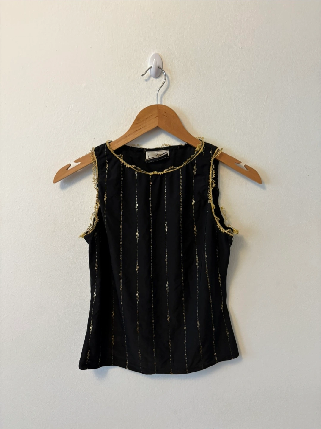 A cute sleeveless top in black with gold detailing from Joseph Ribkoff. In great condition
