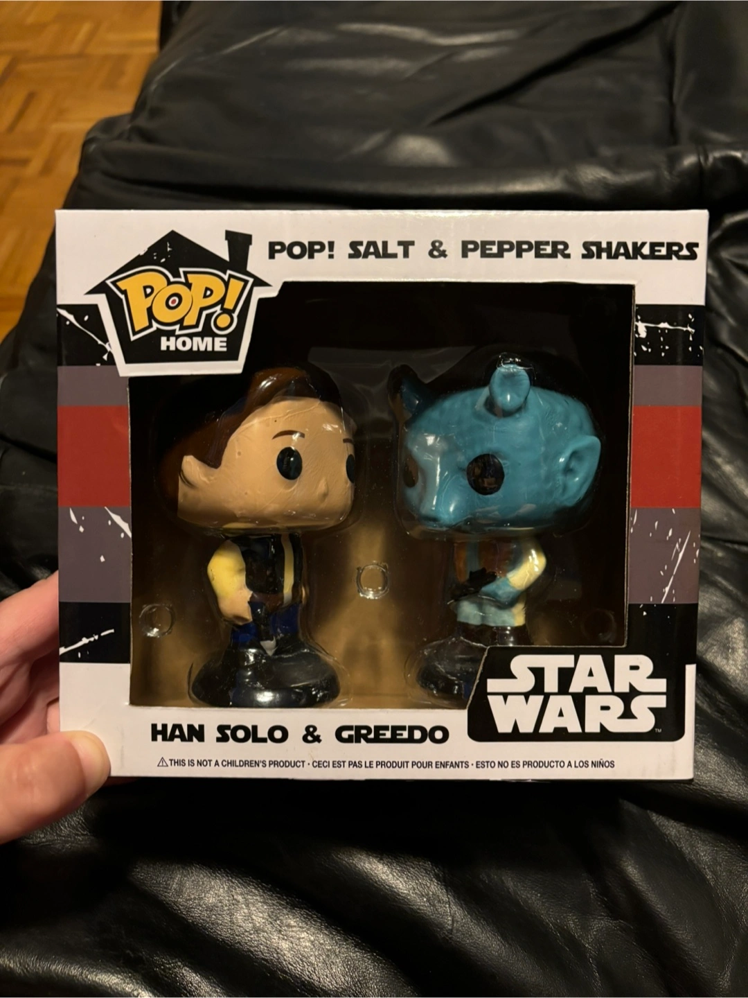 44Funko Pop! Home Salt & Pepper Shakers featuring Han Solo and Greedo from Star Wars! These are brand new and in the original box. A fun addition to any Star Wars collection or kitchen!