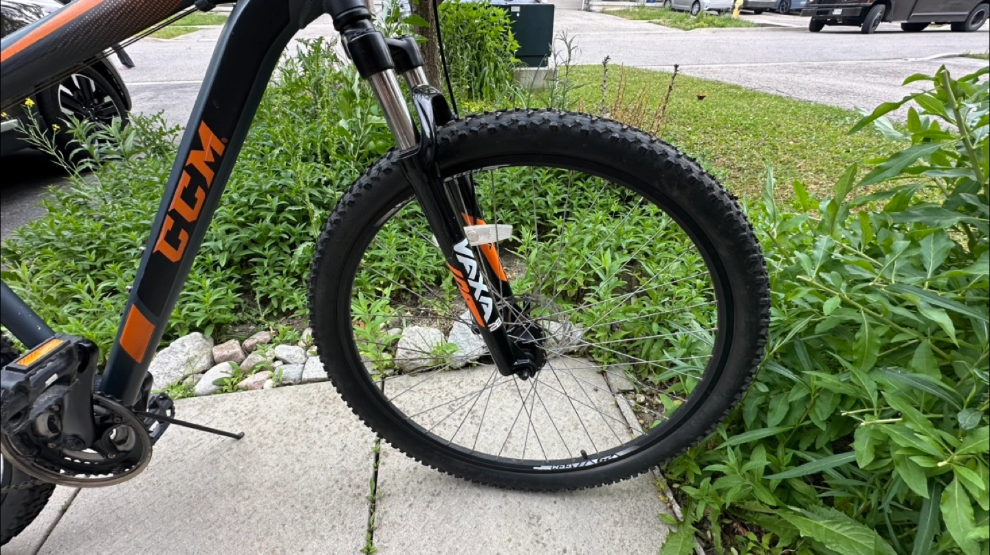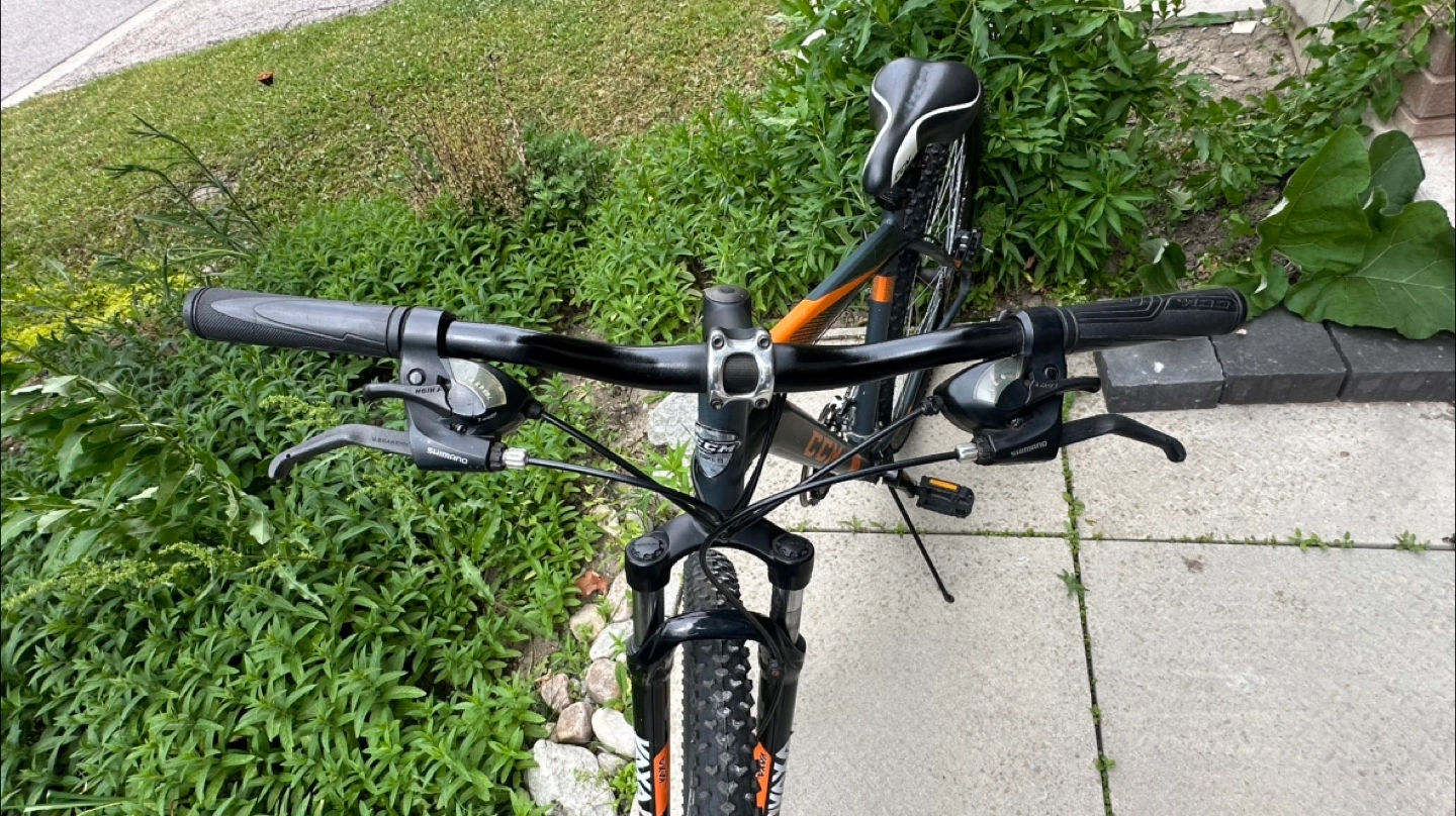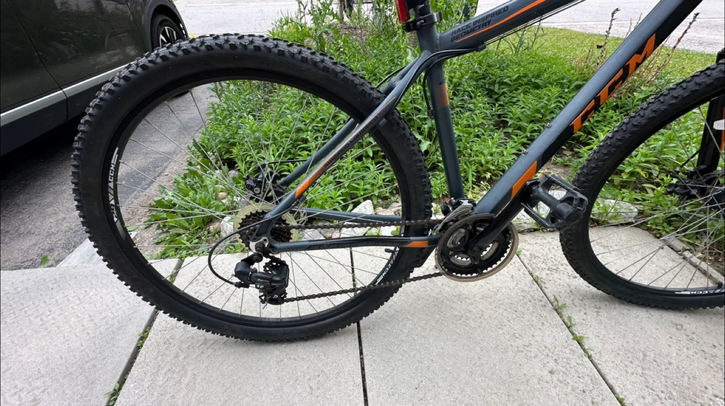 Selling a CCM 29 ER mountain bike in grey and orange. Frame size 7.1in. It's in good condition and ready for some trails or just cruising around the neighbourhood! It features race-inspired geometry for a comfortable ride.