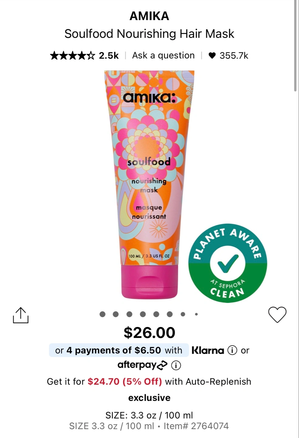 Selling an Amika Soulfood Nourishing Hair Mask! This mask is 3.3 oz / 100 ml. Originally bought for $26.00. It's a great way to nourish your hair!