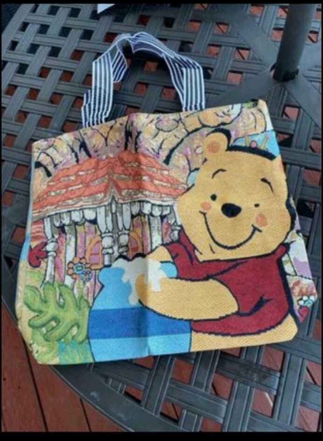 Super cute Winnie the Pooh tote bag! Perfect for carrying groceries or books, this bag is both stylish and practical. The design features Winnie the Pooh with a honey pot, adding a touch of whimsy to your everyday errands