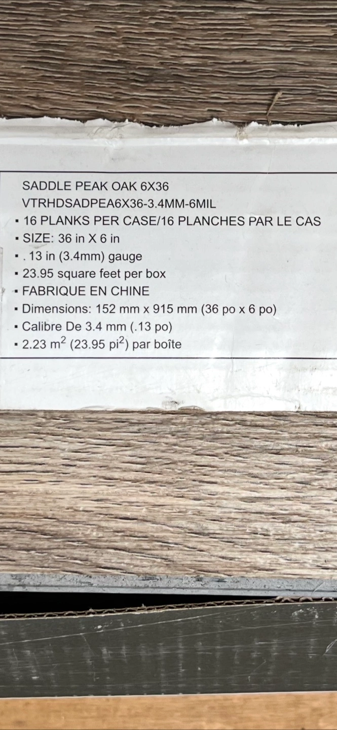 Selling a case of Saddle Peak Oak 6x36 vinyl flooring. Each case contains 16 planks.