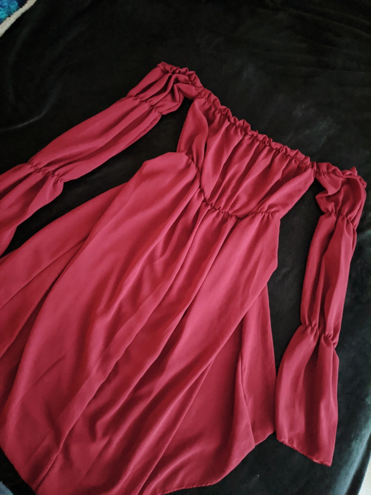Selling a cute burgundy off-shoulder dress! It's in great condition (only used once) and ready for a new home.