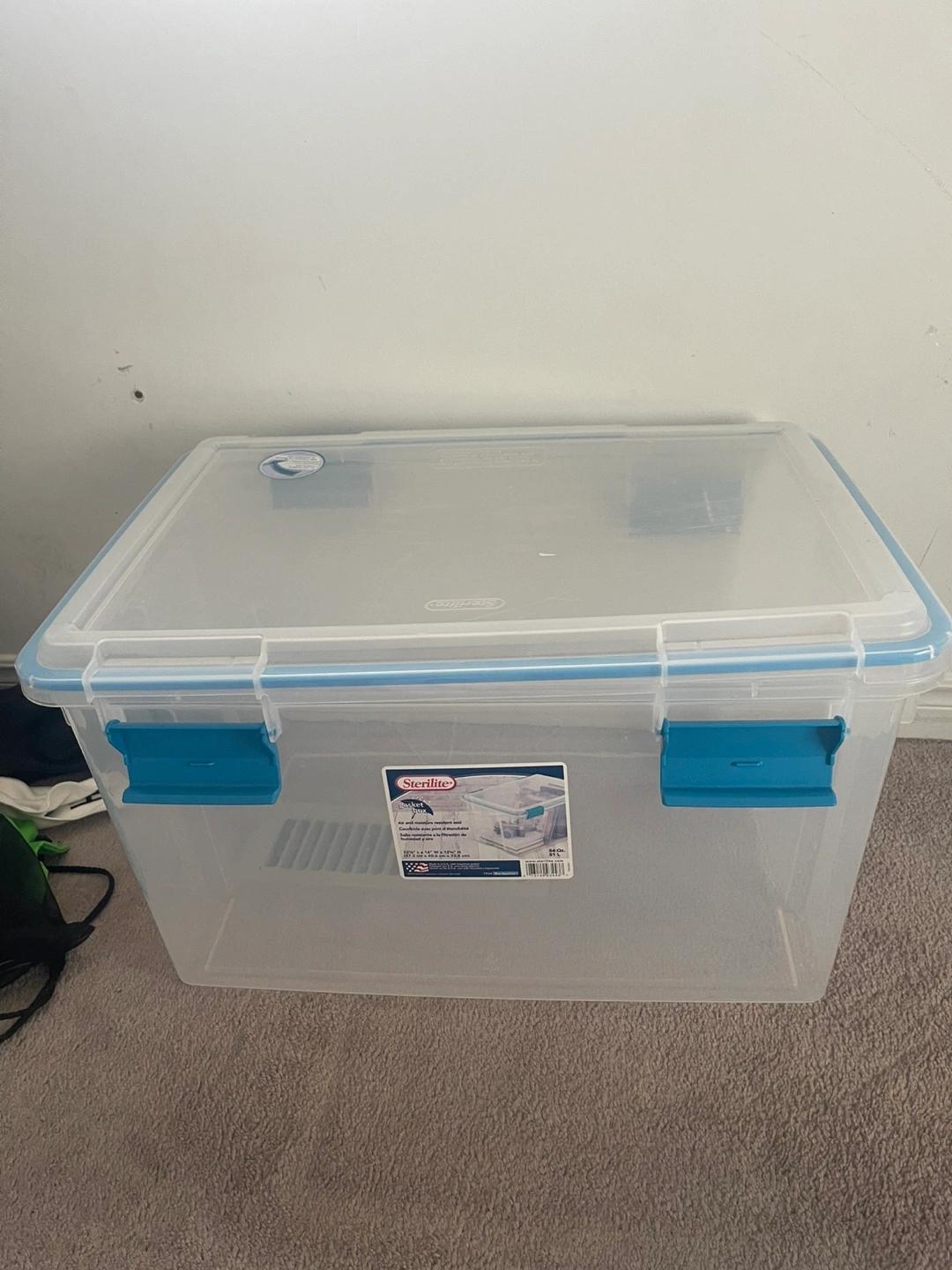 Selling a Sterilite 54 Qt. Gasket Box in excellent condition! It's perfect for storing your items with an air and moisture resistant seal.