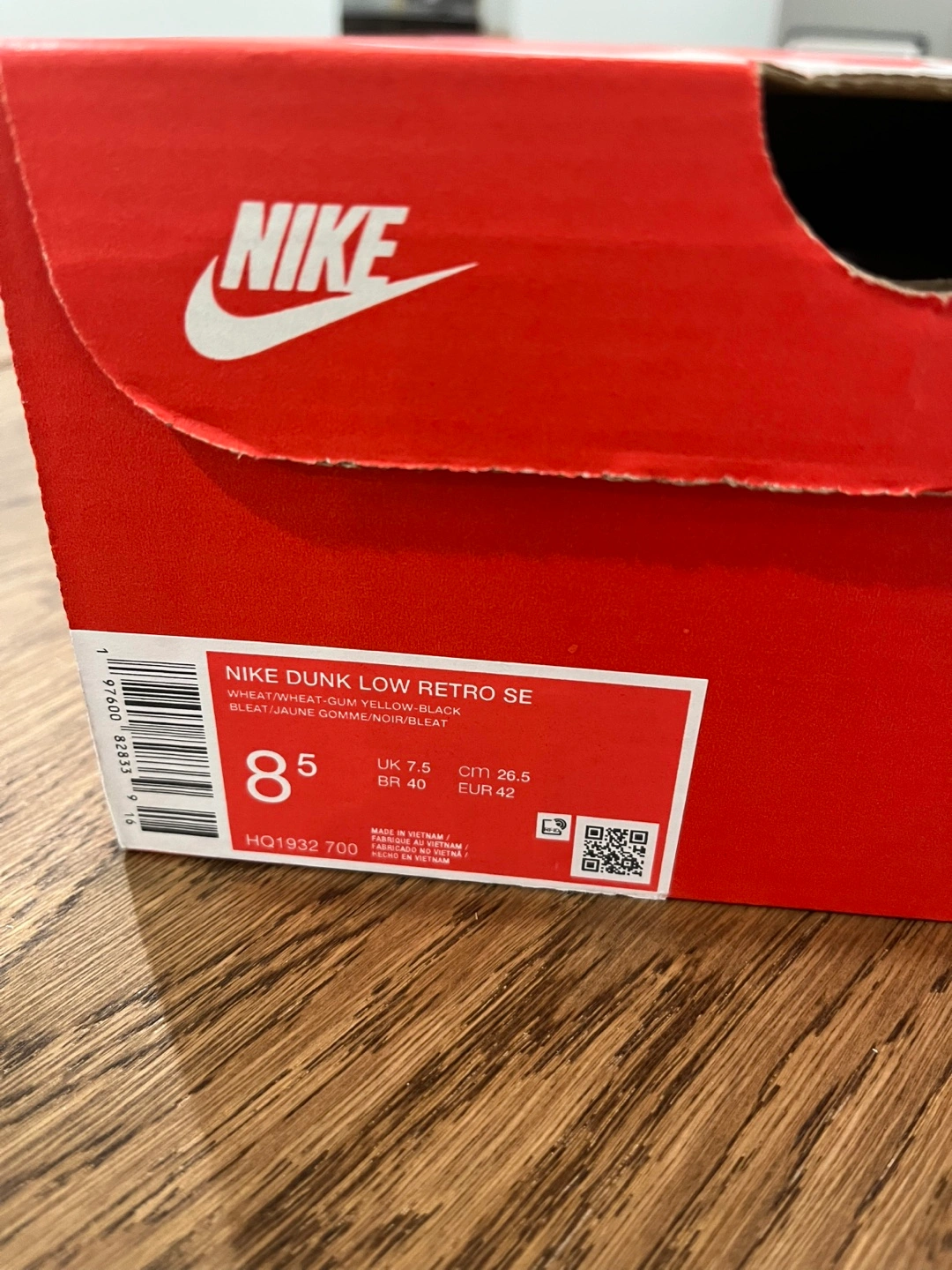 Brand new Nike dunk low wheat with extra laces size 8.5 men’s