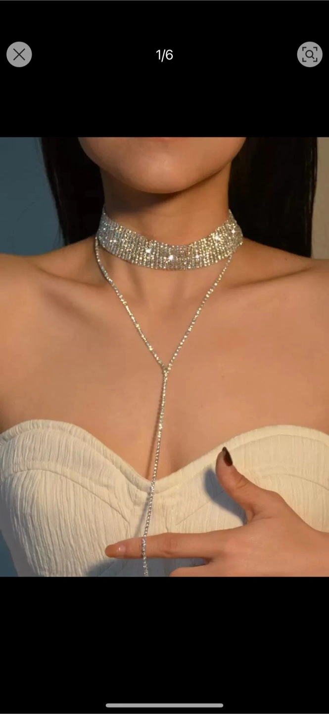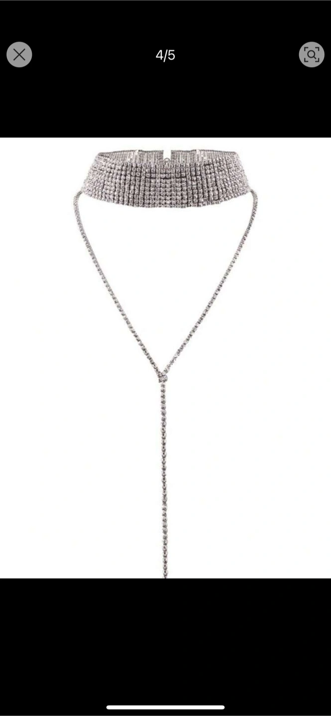 This is a beautiful rhinestone choker necklace, perfect for adding a touch of sparkle to any outfit! It's brand new in packaging and ready to find a new home