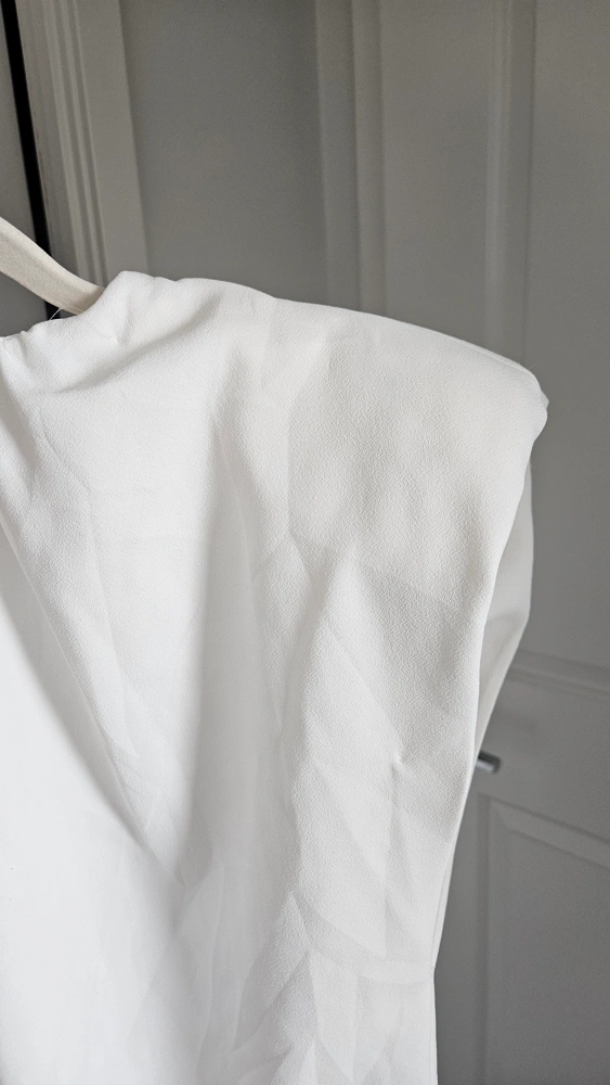 Unique Zara white blouse in size M. It's in great condition and perfect for a dressy, casual or vintage look! Shoulder pad and unique sleeve opening makes this a statement blouse, with a runway style look