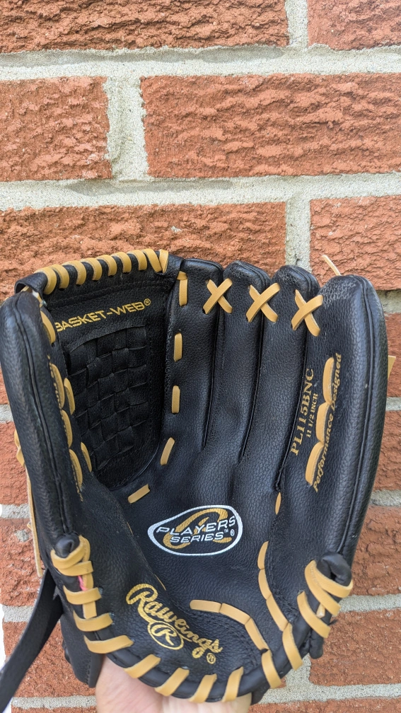 Looking to sell this Rawlings Player Series baseball glove that was too small for my son's hand. It's a basket-web design and measures 11 1/2 inches. Perfect for the baseball season!