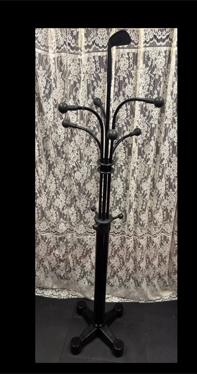 Selling a black metal golf club clothes rack. It's a stylish way to organize your clothes, bags or accessories and keep them easily accessible.