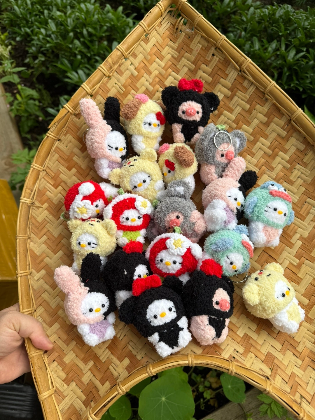 These adorable handmade keychains feature Pompompurin in a cute costume! They're perfect for adding a touch of kawaii to your keys, backpack, or purse. Each one is unique and carefully crafted with soft, fluffy materials