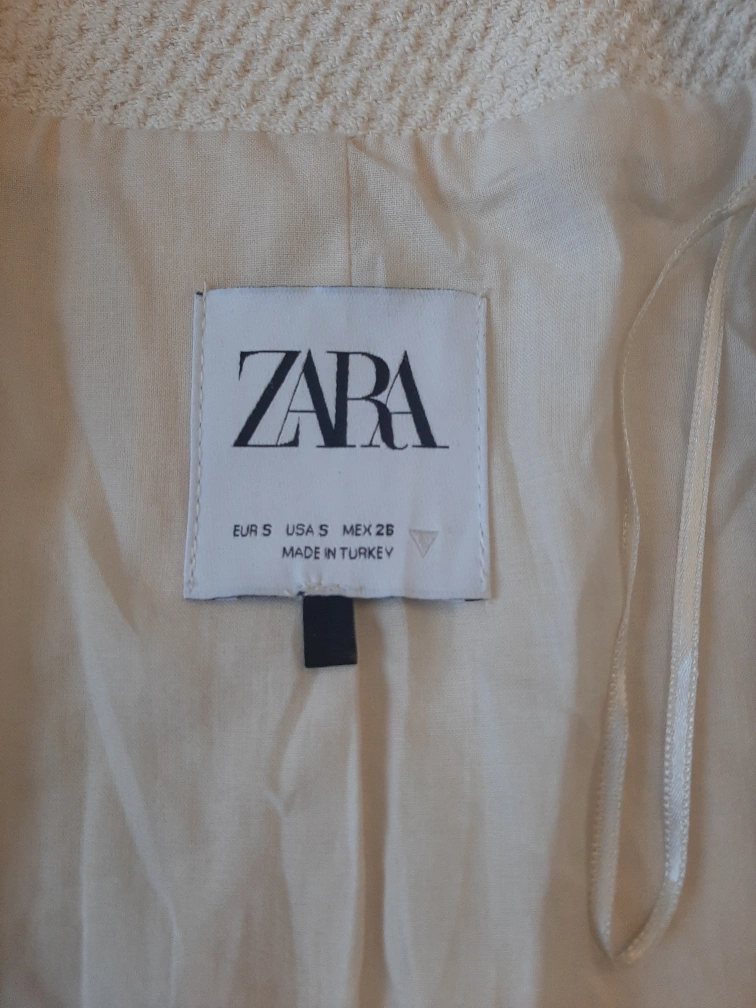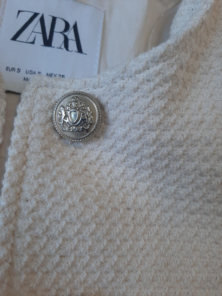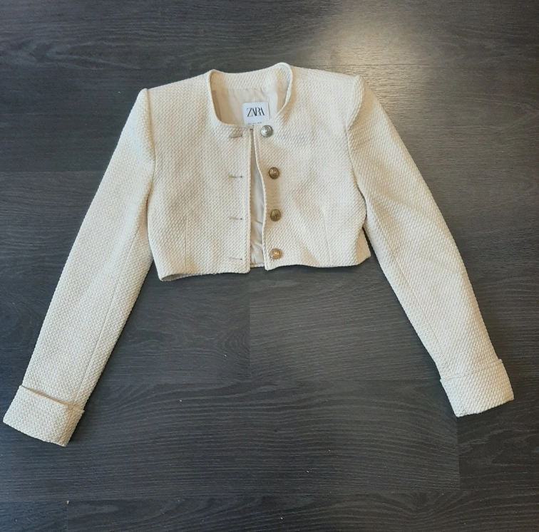 Selling a Zara cropped blazer in size small. It's in great condition and would be a lovely addition to your wardrobe!