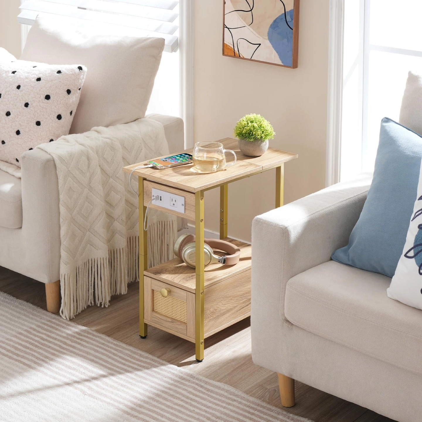 Side Table with Socket: This side table with a socket including 2 USB ports, 1 outlet and a 12.5 cm power cord can be a right-hand helper to charge multiple electronic devices at the same time.The power source within reach makes charging hassle-free