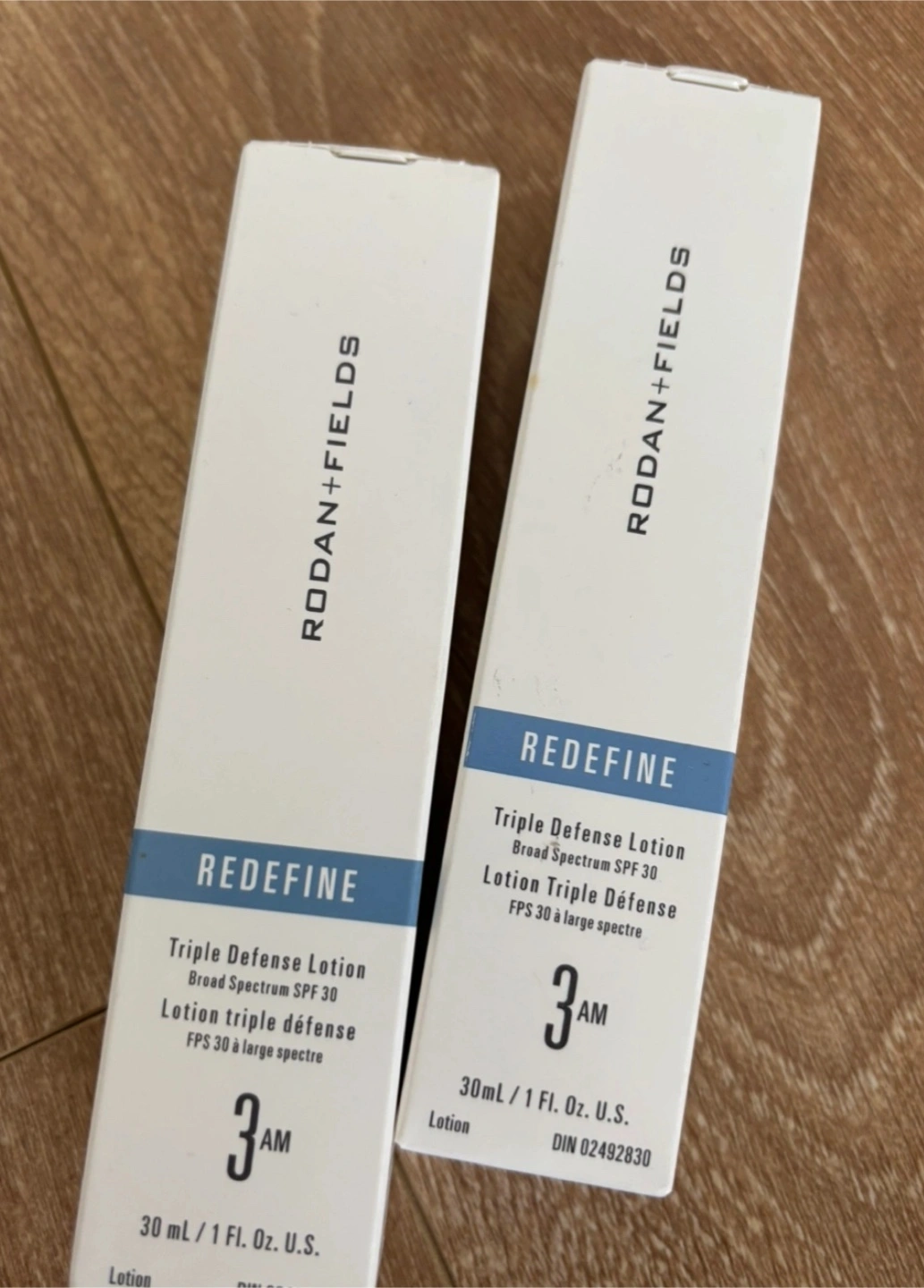 Selling two bottles of Rodan + Fields Redefine Triple Defense Lotion with SPF 30. Each bottle contains 30ml / 1 fl oz. It's a broad spectrum sunscreen, perfect for daily use!