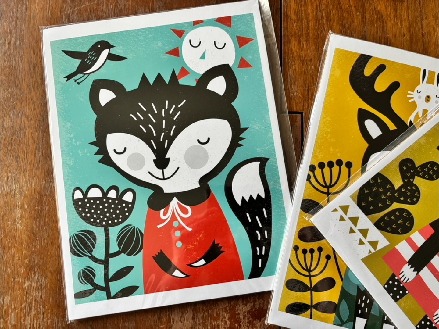 Selling a set of illustration prints by Vanja Kragulj. They feature adorable animal designs in a colourful, modern style. Perfect for adding a touch of whimsy to any room!