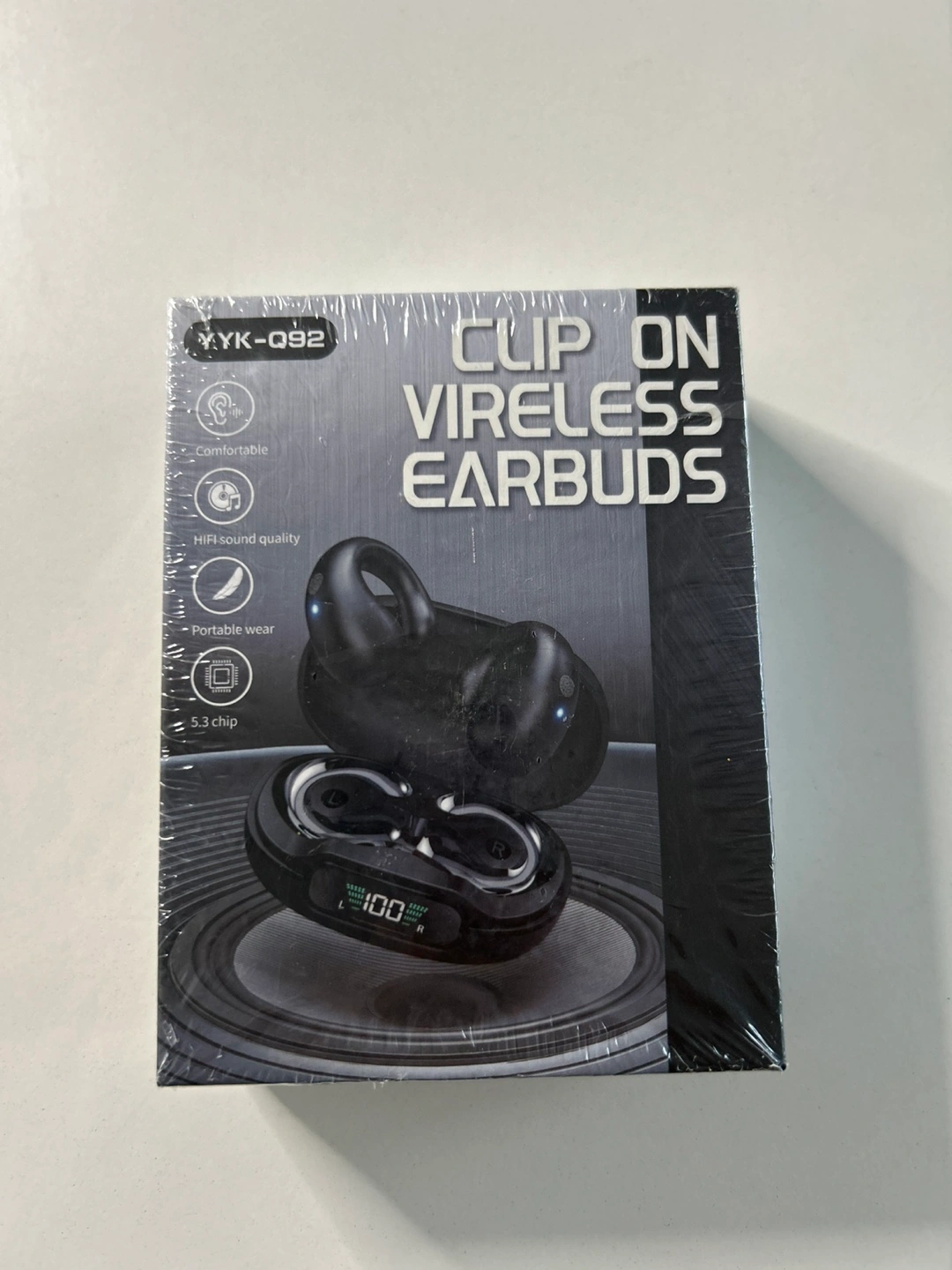 34Selling a new pair of YK-Q92 clip on wireless earbuds! These earbuds feature a comfortable design and HiFi sound quality. They also have a 5.3 chip for great performance. Perfect for anyone looking for portable wear!