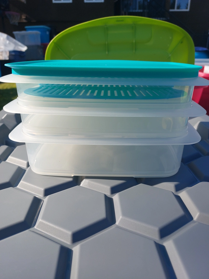 138new Tupperware 5 piece stackable containers with grid pick up in Surrey