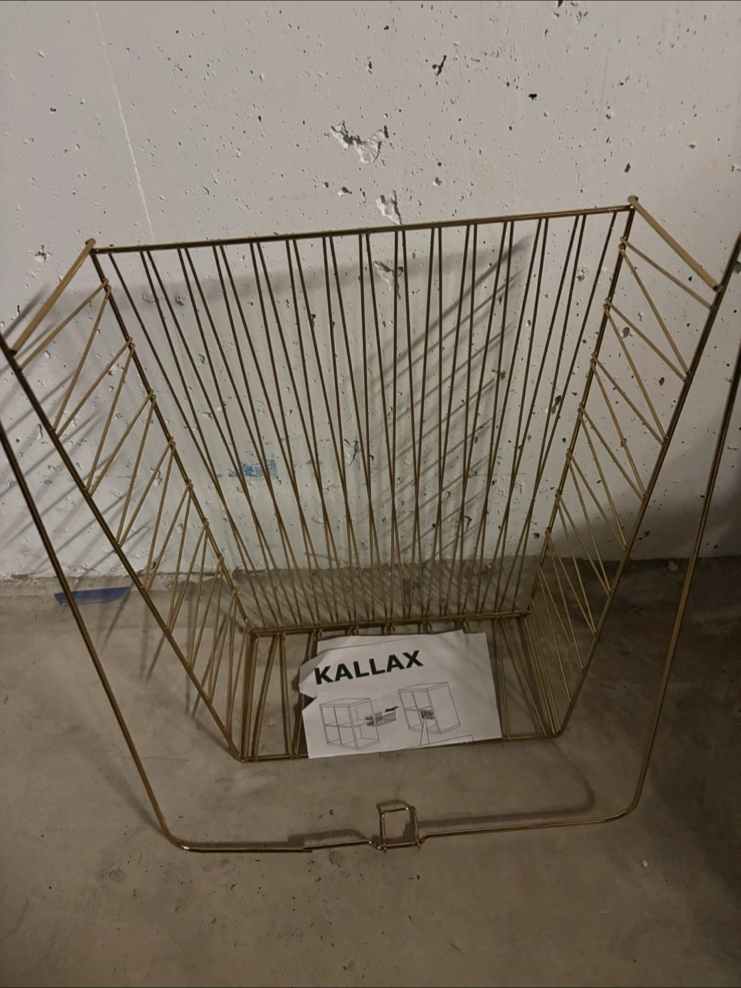 Selling a gold-coloured wire basket insert for the IKEA Kallax shelving unit. It's in good condition and ready to add some stylish storage to your space!