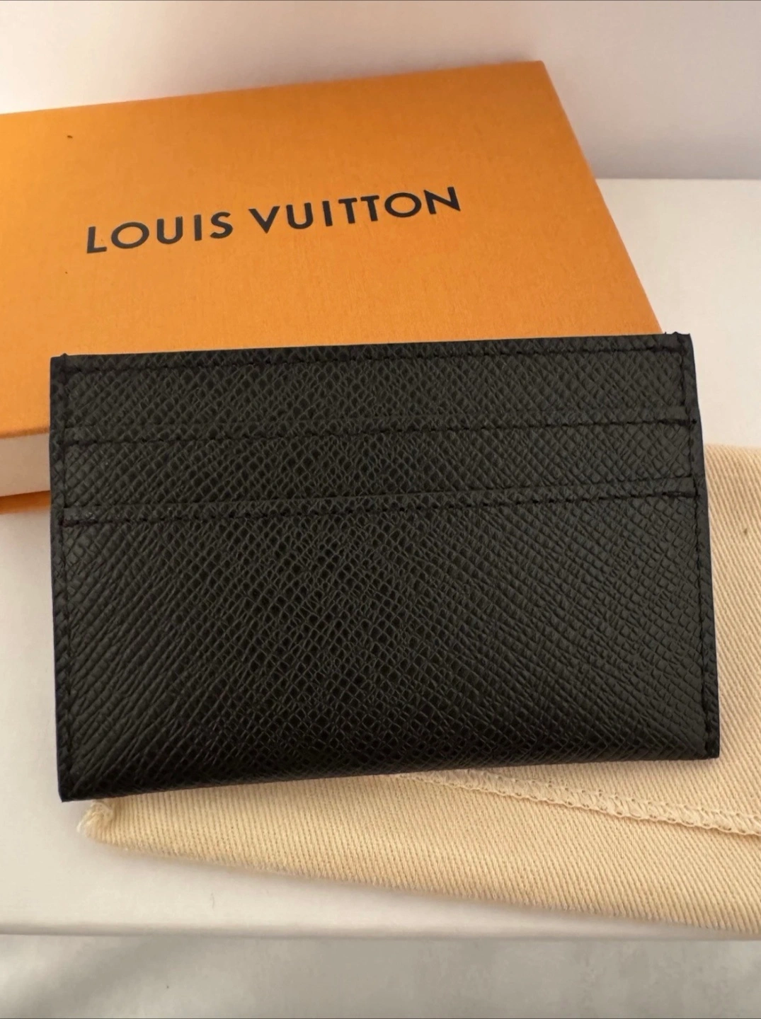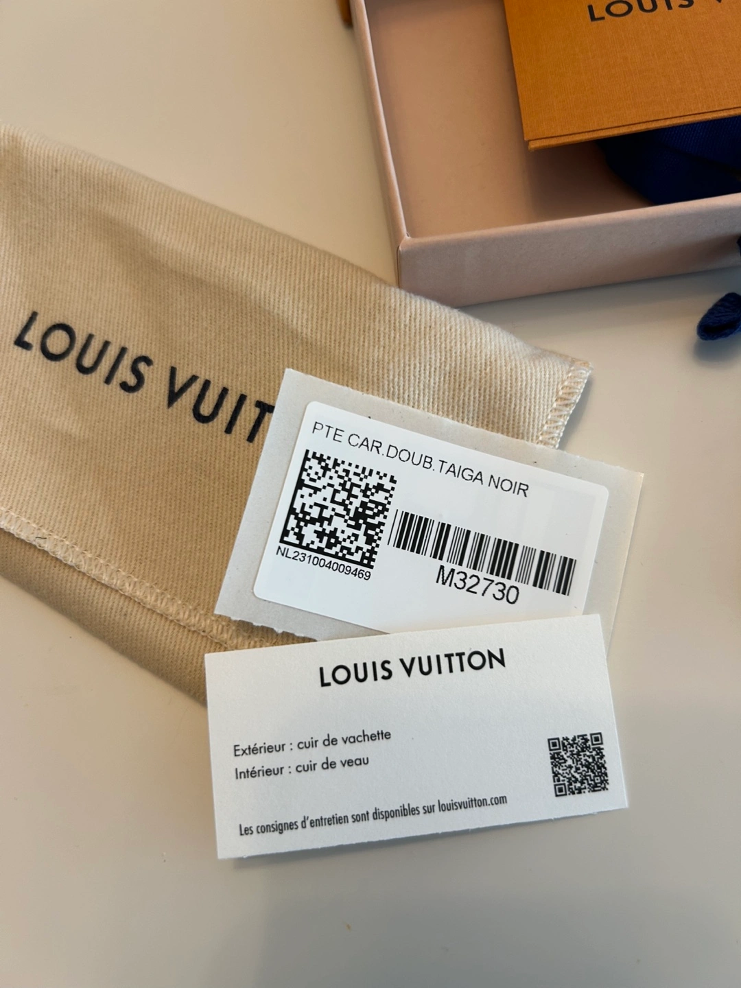 Authentic Louis Vuitton Taiga Porte Carte double card case wallet. Model is M32730.