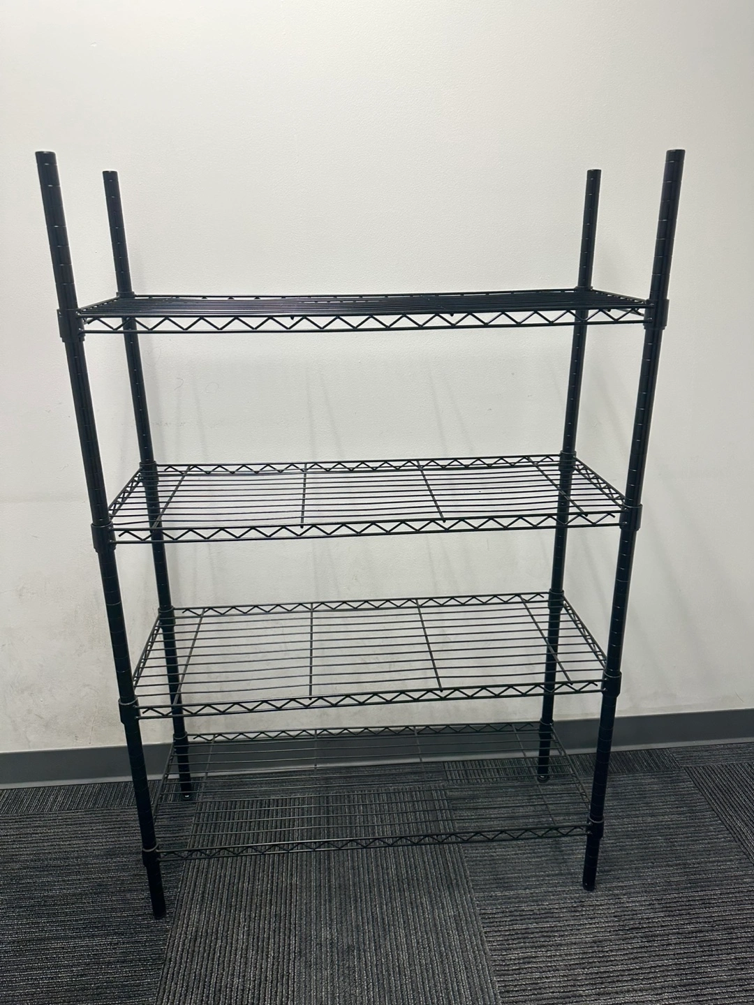 I'm selling a black wire shelving unit. It's in great condition and ready for a new home! Perfect for organizing your space, whether it's a closet, garage, or pantry. This sturdy unit offers ample storage with its multiple shelves.