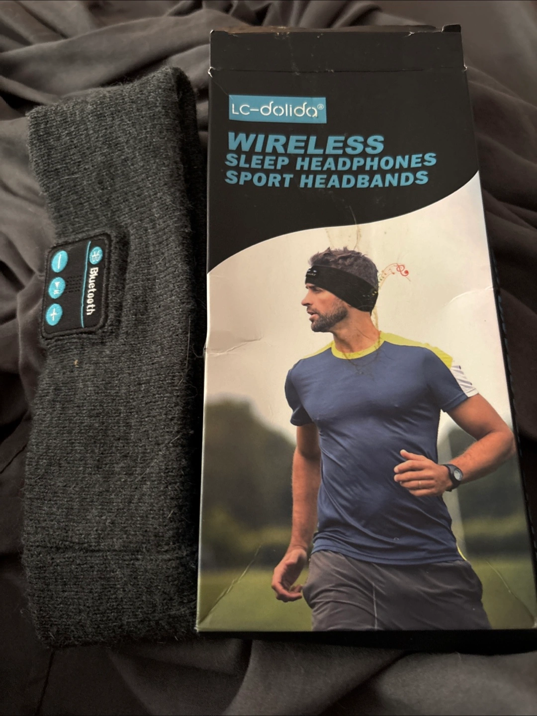 Selling a LC-dolida wireless sport headband sleep headphones in grey. Great sound quality great for listening to music while working out or relaxing. Comes with Bluetooth connectivity.