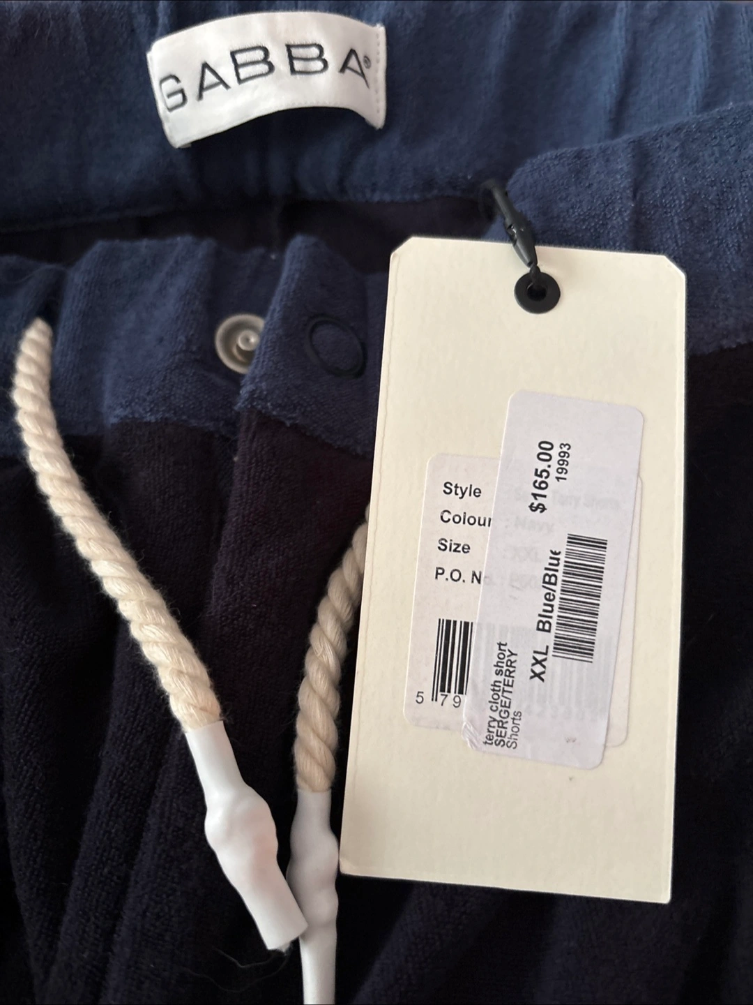 Terry Cloth Gabba Shorts in size XXL. The colour is Blue/Blue. Originally bought for $165.00
