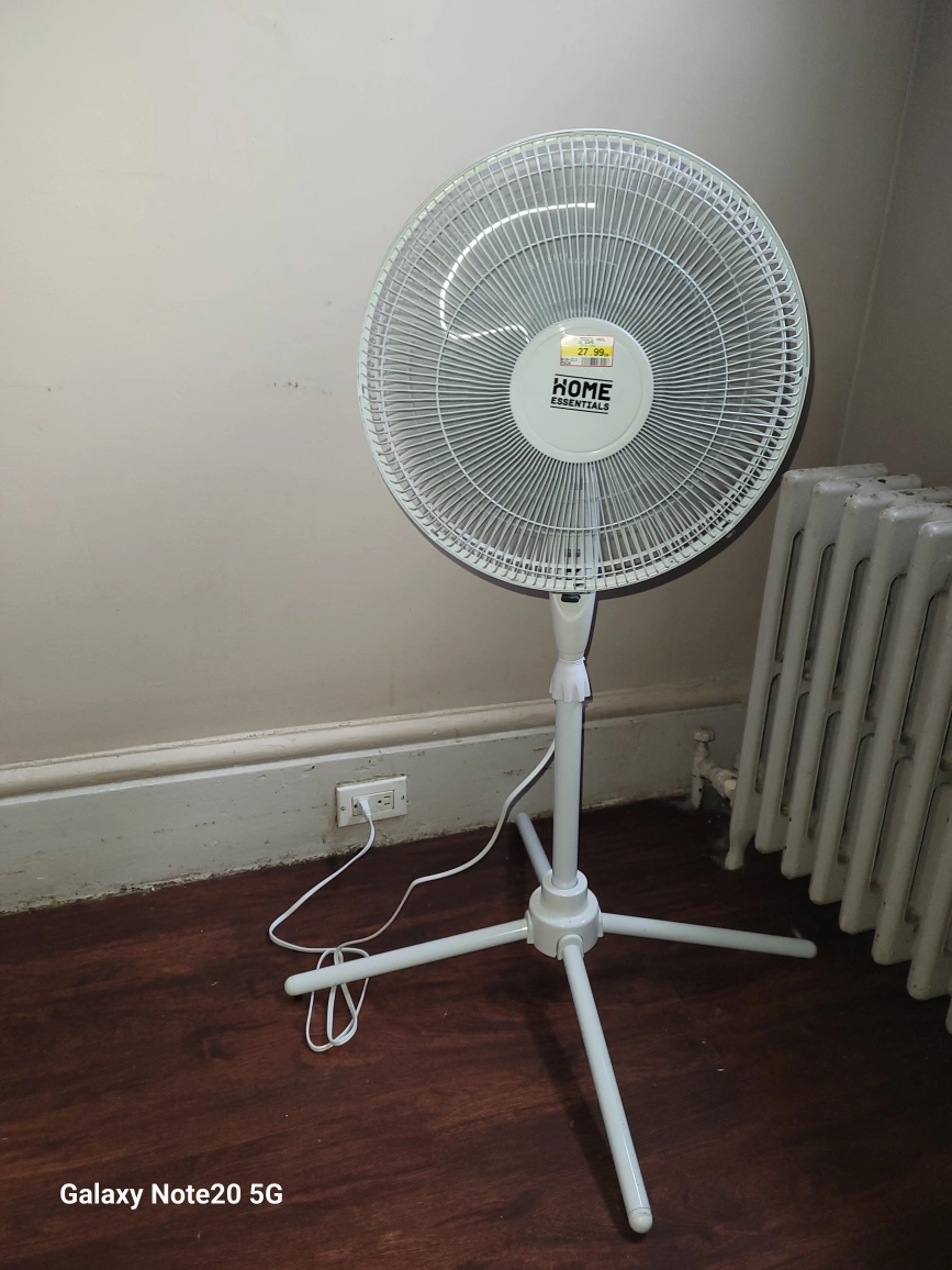 Selling a NEW Home Essentials stand fan in white. It was originally bought for $27.99.