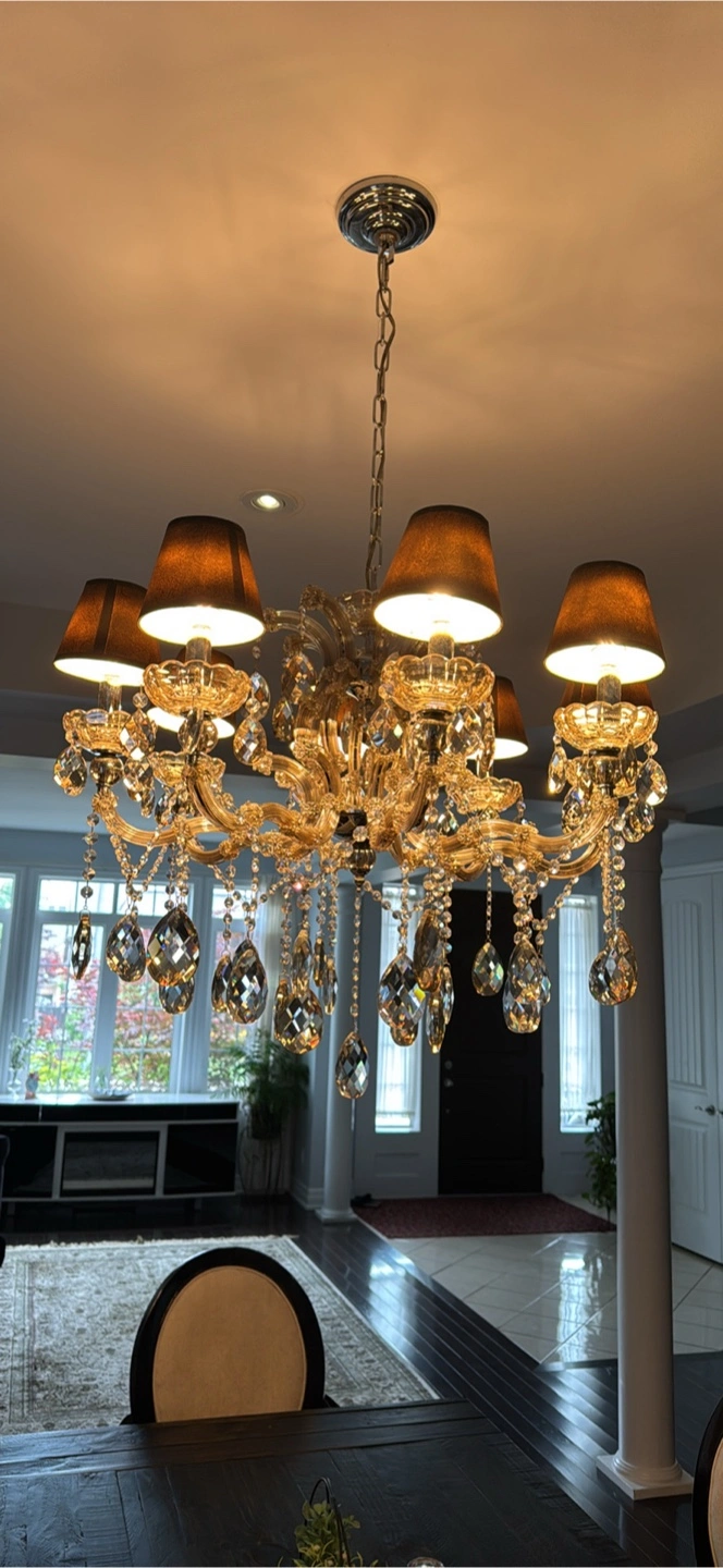 Add a touch of elegance to your home with this beautiful crystal chandelier! It features a classic design with shimmering crystals and a sophisticated finish. Perfect for dining rooms, living rooms, or entryways, this chandelier will create a warm and inviting atmosphere