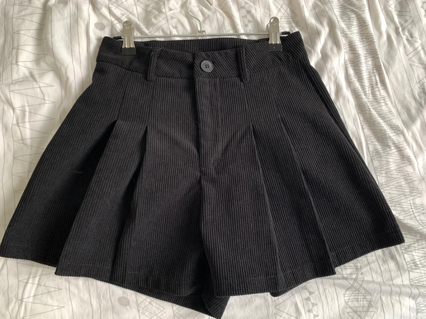 343Selling a cute black corduroy skort! It's in great condition and would be a great addition to your wardrobe. The skort has a pleated design and a comfortable fit.