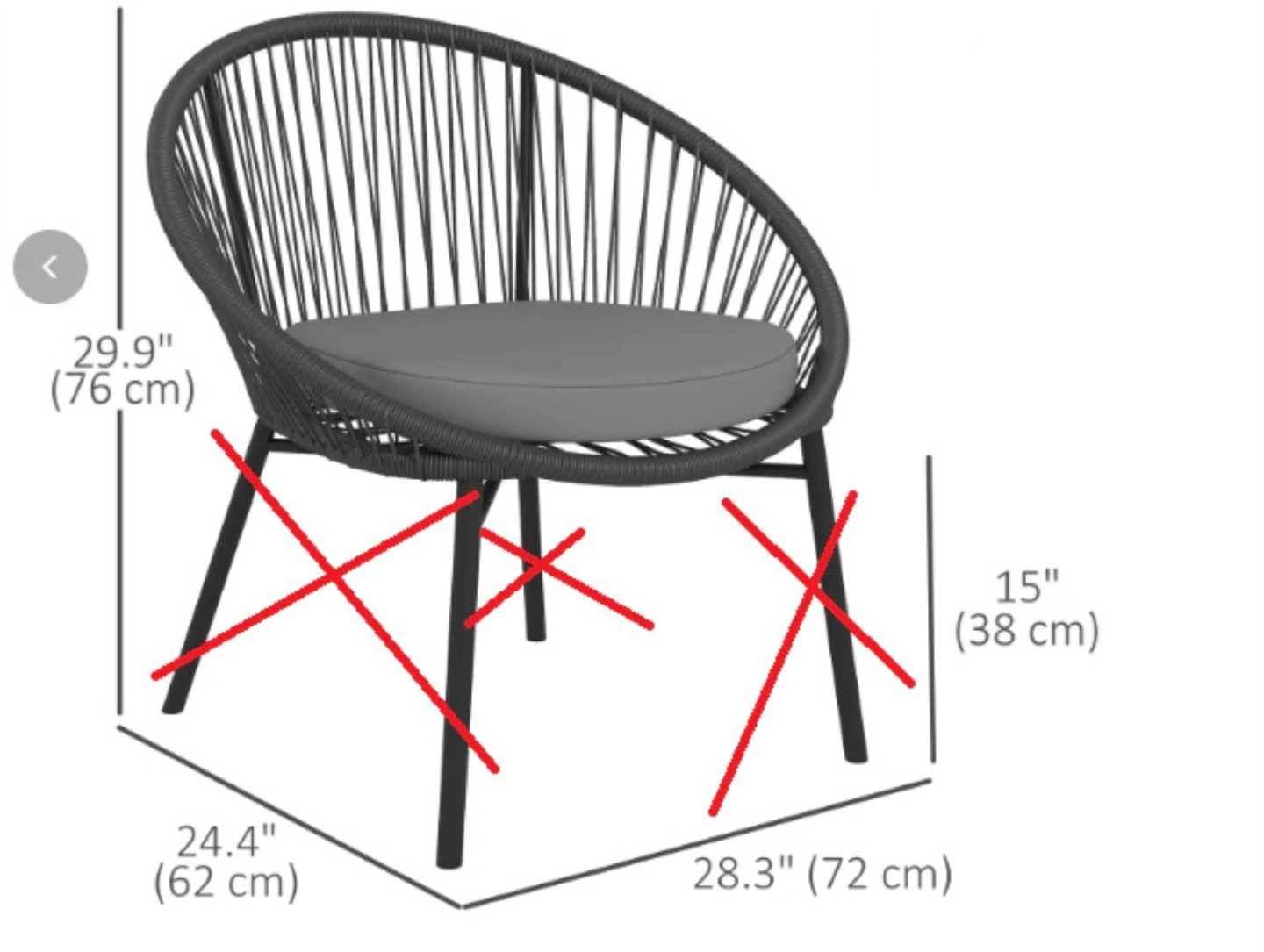 Wicker Patio Chair tops. Pair. MISSING LEGS, CHAIR TOP ONLY. SEE PICS Crafted with a strong steel frame and hand-woven PE rattan, this patio furniture is built to endure Chair dimensions: 28.3"L x 24.4"W x 29.9"H (72L x 62W x 76H cm) PICKUP IN COURTICE NEAR HWY 2 AND COURTICE RD all sales are final