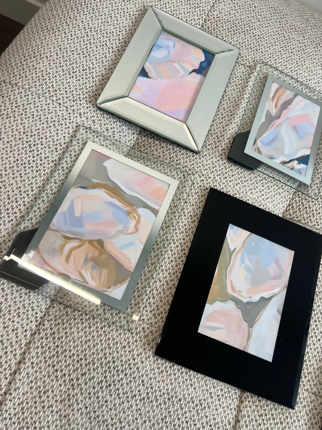Selling a set of assorted picture frames! There are a few different styles including black, silver, and glass frames. They're in great shape and ready to display your favourite photos or artwork Set of 6 for $55 or 10$ each