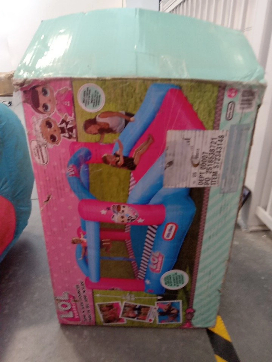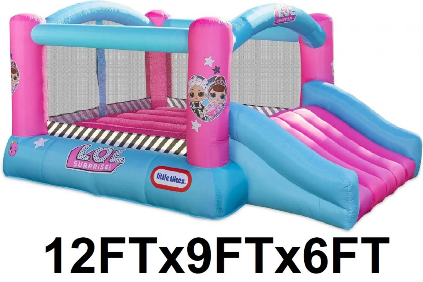 Selling a L.O.L. Surprise! inflatable bouncer with a slide. This fun bouncer is perfect for kids and is in great condition. It measures 12ft x 9ft x 6ft when inflated, providing plenty of space for play. Includes the blower for easy setup!
