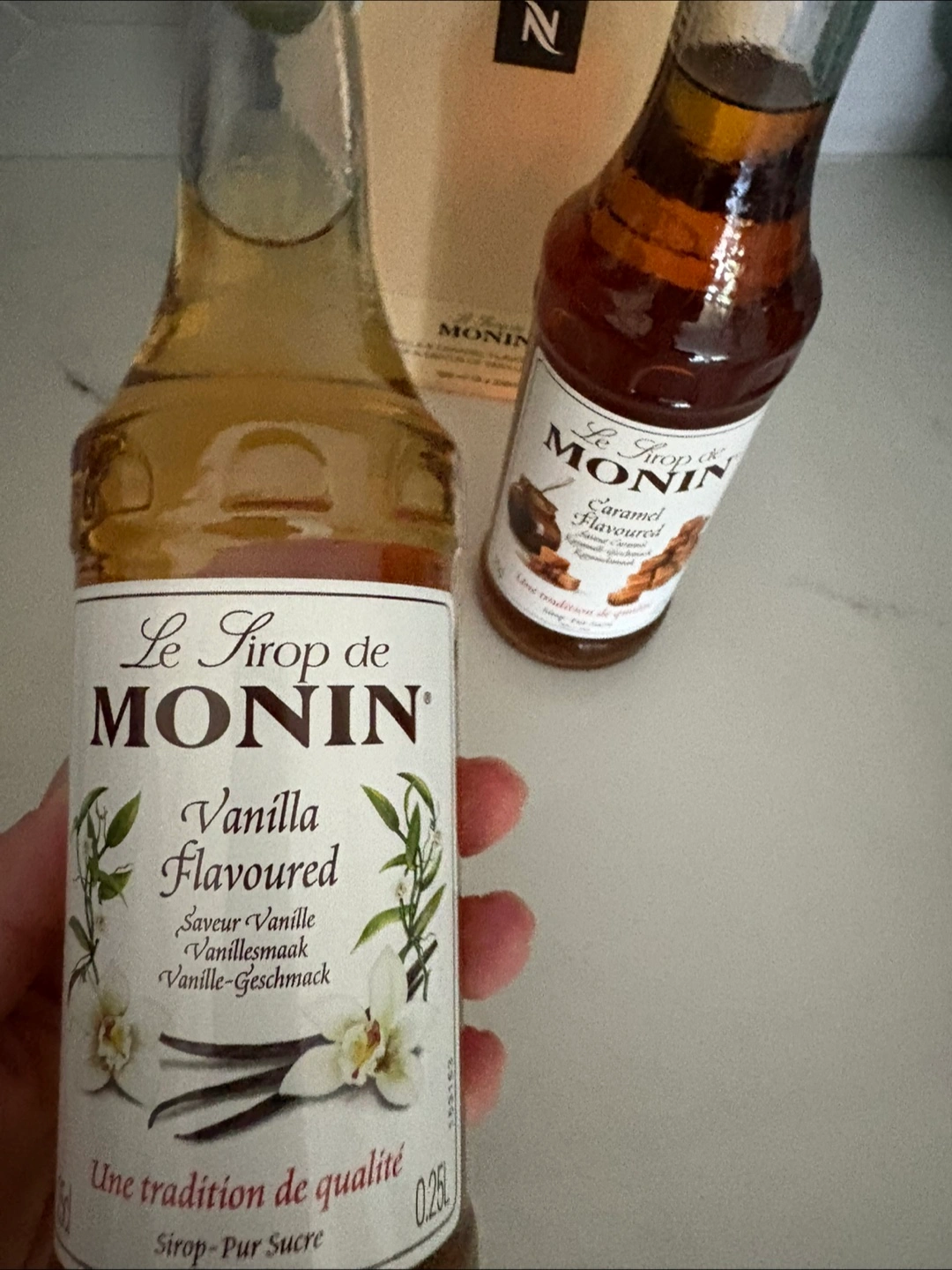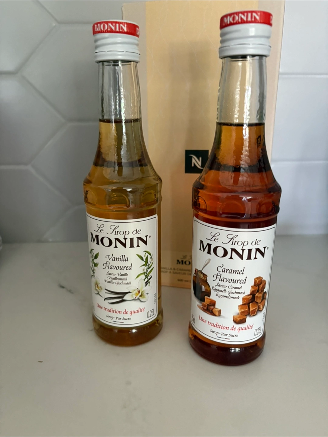Selling a Nespresso Vanilla & Caramel Flavoured Syrup set, which also includes Le Sirop de Monin Vanilla and Caramel Flavoured syrups!