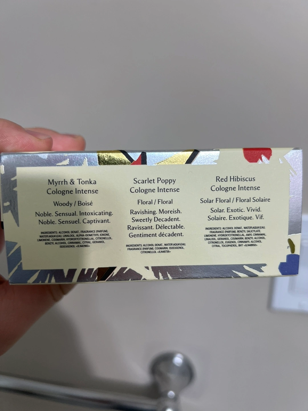 Three 9ml Cologne Intense fragrances. Myrrh & Tonka, Scarlet Poppy, and Red Hibiscus. Like new, used 2 times, bought from Sephora, but not my smell.