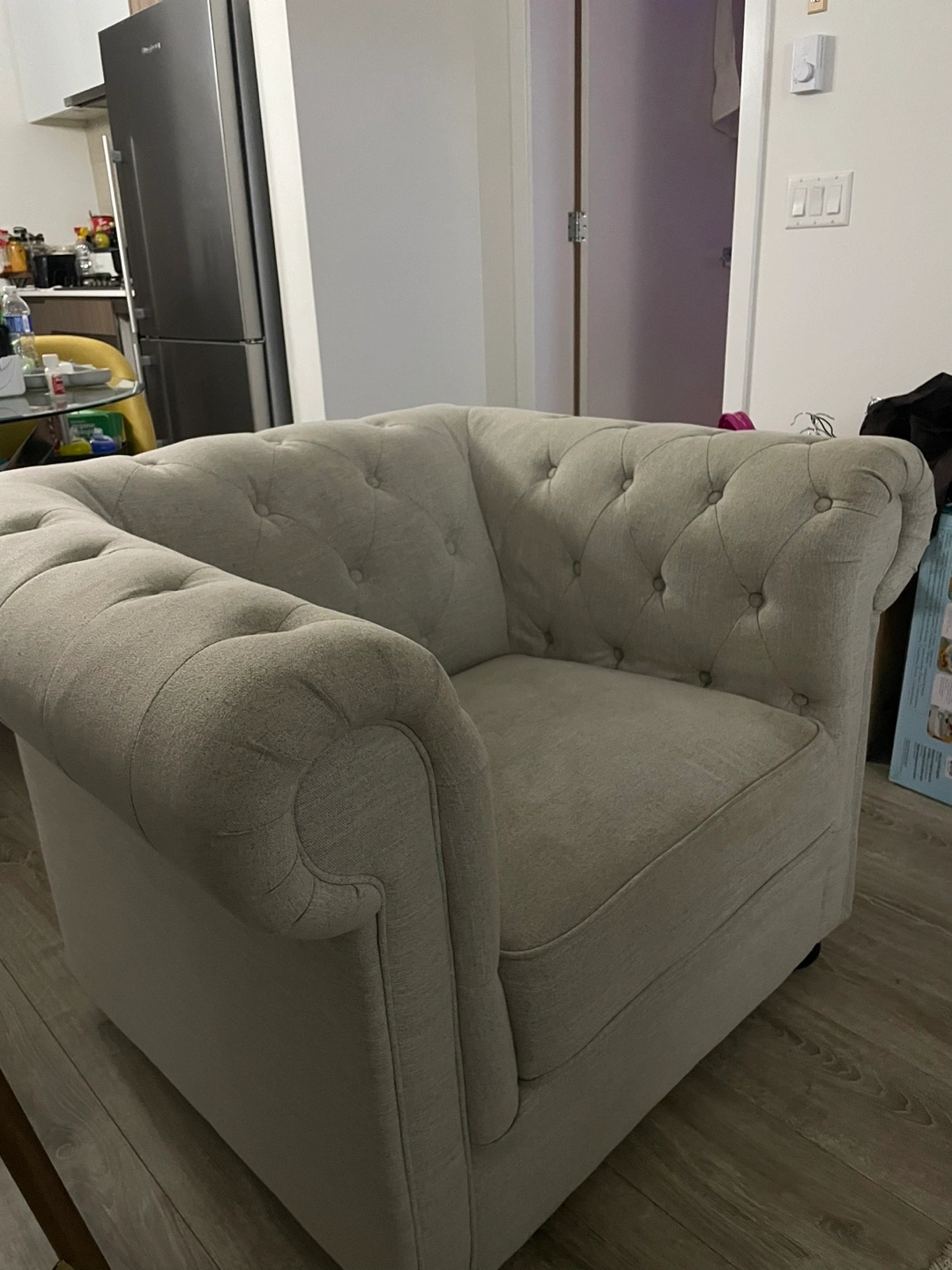 Selling a charming Chesterfield style sofa and armchair set! The set is in great condition and would look amazing in any living room. The sofa has a classic button-tufted design and comfortable cushions, perfect for relaxing or entertaining guests. If you're looking for a stylish and comfortable seating solution, this set is a great choice! (2 single seats)