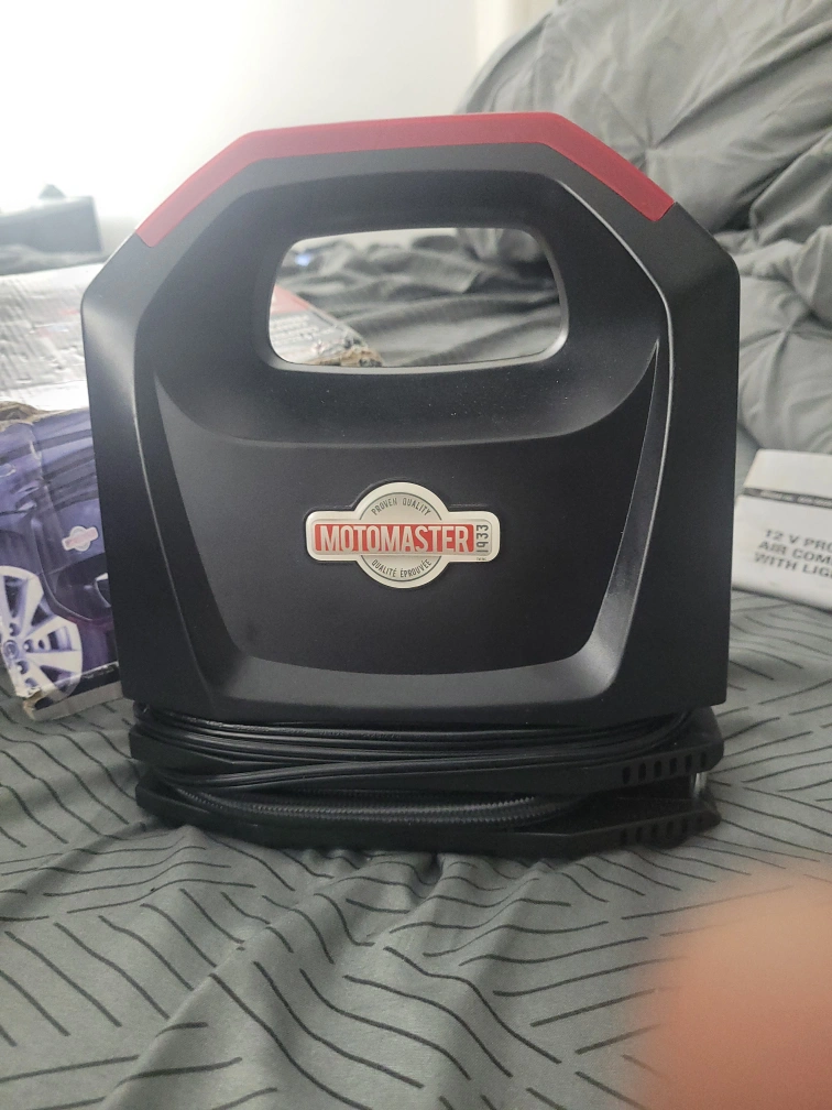 Selling a MotoMaster 12V Portable Air Compressor. It features a built-in LED light for nighttime use and is perfect for inflating tires and other inflatables. It's in great condition and ready to go!