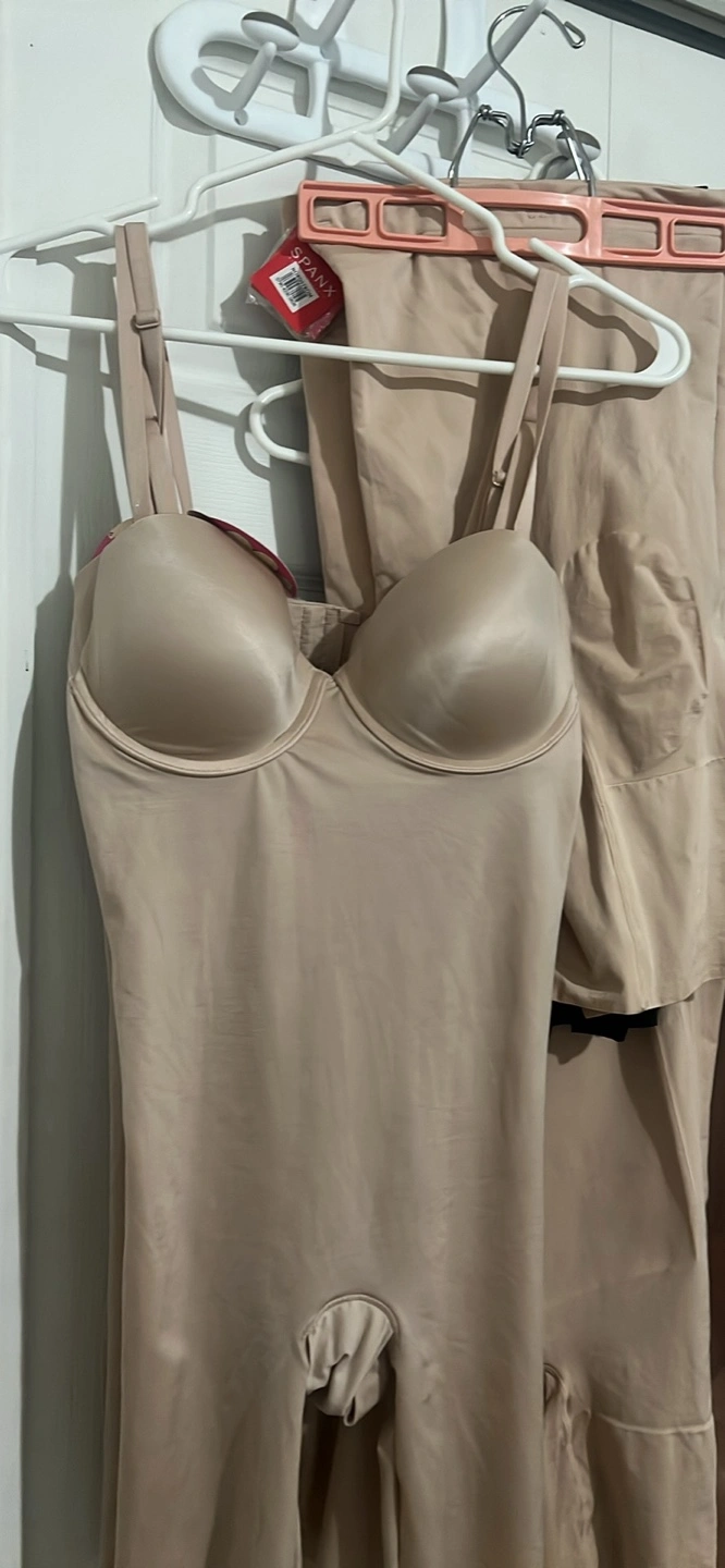 67Selling a Spanx bodysuit in a beige colour. It appears to be in great condition and ready for a new home!