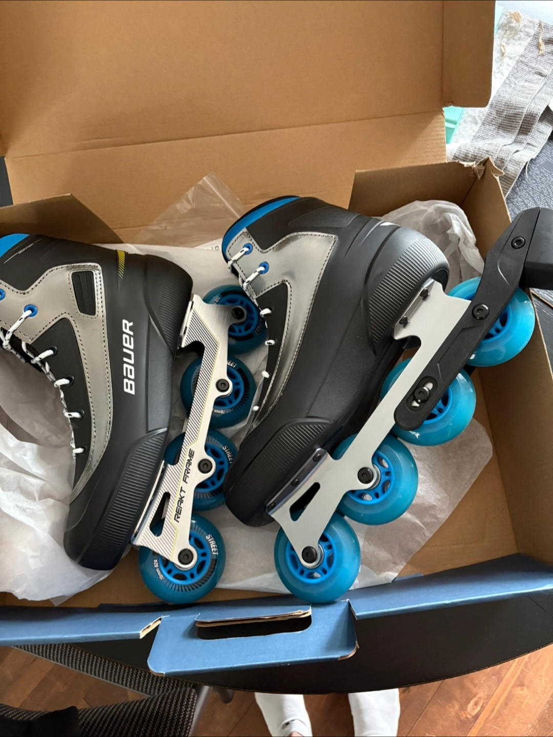 Selling a new pair of Bauer Coaster roller skates — never worn, still in the original box with packaging. These are high-quality inline skates perfect for beginners to intermediate skaters who want smooth rides and great ankle support.