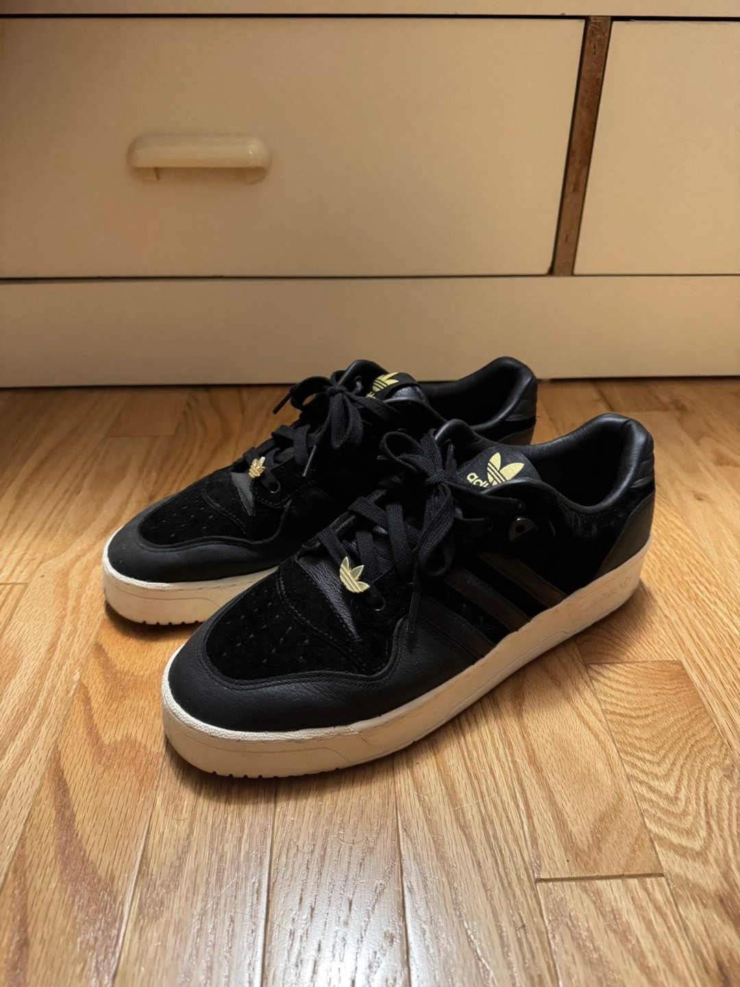 60Selling a pair of Adidas Rivalry Low sneakers in black! They're in great shape and ready for a new home